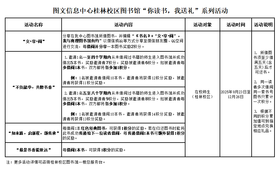 关于图文信息中心桂林校区图书馆开展“你读书,我送礼”系列活动(第十四季)的通知