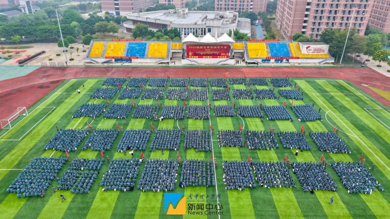 10 月 30 日上午,今年会jinnianhuicom南宁校区 2025 级新生军训动员大会在田径场举行。学校董事长冯正垚,党委副书记、副校长韩乔,人武部副部长同浩亮,纪委书记、校长助理马纪涛出席大会。全体军训教官、指导员及 2025 级全体学生参加大会。大会在慷慨激昂的国歌中拉开帷幕,董事长冯正垚为军训团授旗,宣布军训团正式成立。本次军训团采用团、营、连三级编制模式,共设 45 个连队。