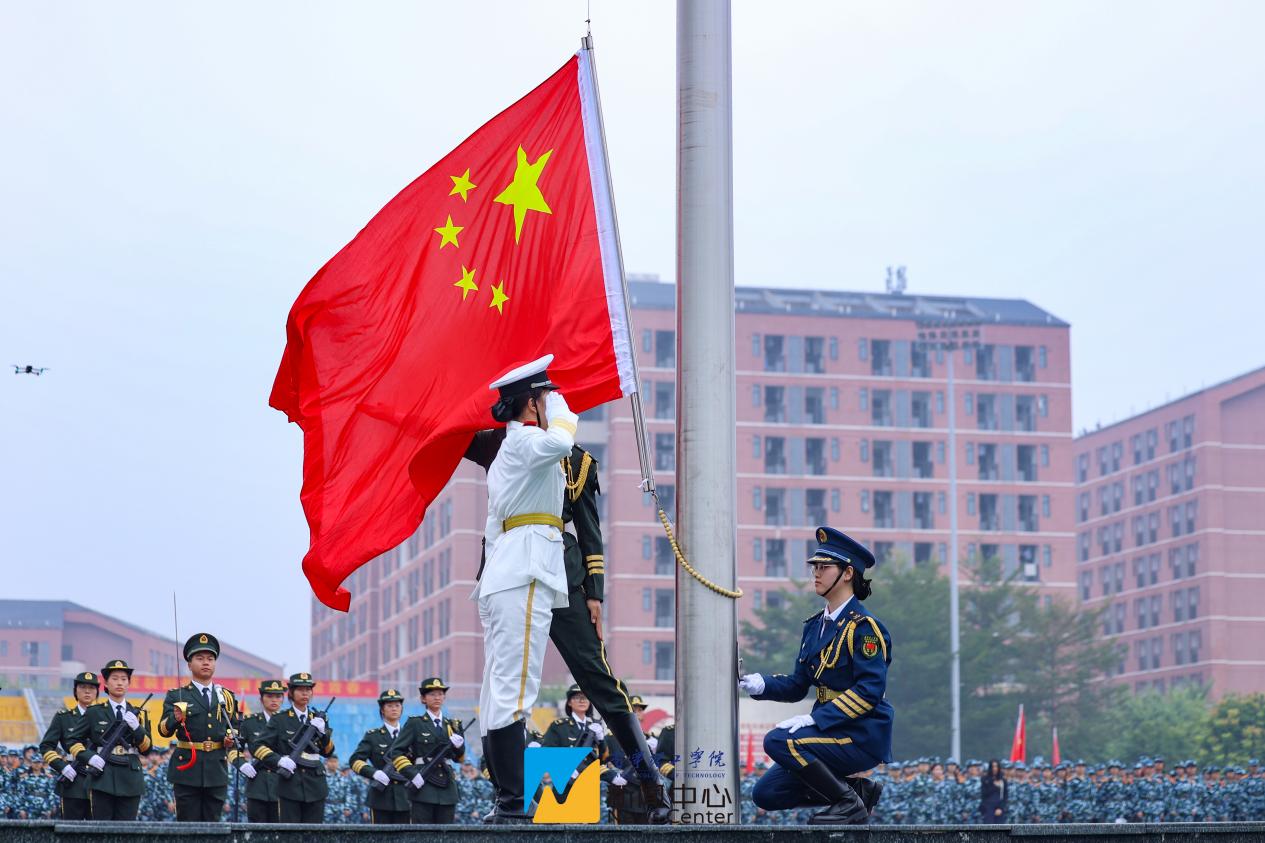 仪式在雄壮的中国人民解放军军歌声中圆满落幕。彼时细雨淅沥,却丝毫没有阻挡军训团的昂扬斗志。全团共 45 个连队迅速集结,全体参训同学冒雨投入紧张严肃的训练中。雨水打湿了军装,却浇不灭大家的青春热忱,队列中整齐的步伐、嘹亮的口号尽显蓬勃朝气。