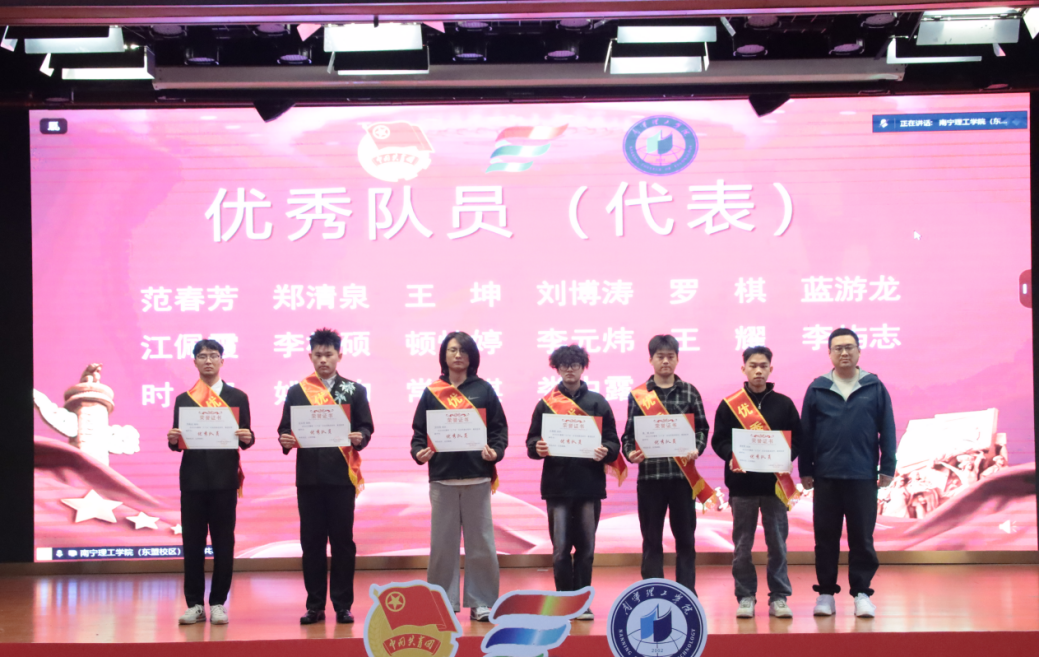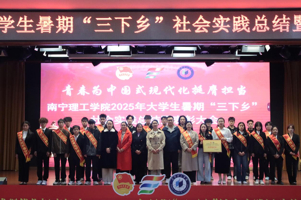 为深入学习贯彻习近平新时代中国特色社会主义思想,引导青年学生在社会实践中受教育、长才干、做贡献,12月10日,我校分别在南宁、桂林两校区报告厅同步举行2025年暑期“三下乡”社会实践活动总结暨表彰大会。学校党委副书记、副校长韩乔出席;学生工作处处长李枚晏,团委书记、学生工作处副处长梁杰,学生工作处学生管理科、各二级学院团委书记、学校团委老师、受表彰的师生代表、各实践团队队员和学生代表参加。大会由学校团委老师祁琳主持。