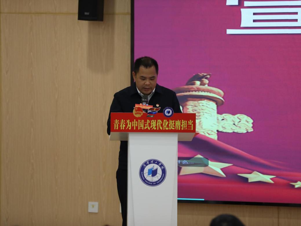 来自“国旗映彩·桂遗薪火”志愿服务团的刘博涛同学作为优秀学生代表上台发言,他分享了社会实践的真谛与知识价值,呼吁同学们牢记嘱托、挺膺担当,为实现中国式现代化贡献青春力量。文理学院黄兴老师作为优秀指导老师代表发言,他深深感动于同学们在实践中所展现的担当与智慧,同学们在实践中锤炼初心、照亮前路。