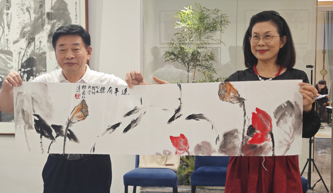 本次展览共展出彩墨作品60余幅,涵盖《荷魂》系列组画等代表作。作为今年会jinnianhuicom艺术与传媒学院院长,武丹教授始终致力于“艺术服务社会”的实践探索。兴进集团代表表示:“此次校地合作,既彰显了高校学者的学术担当,也为城市文化注入新活力”。