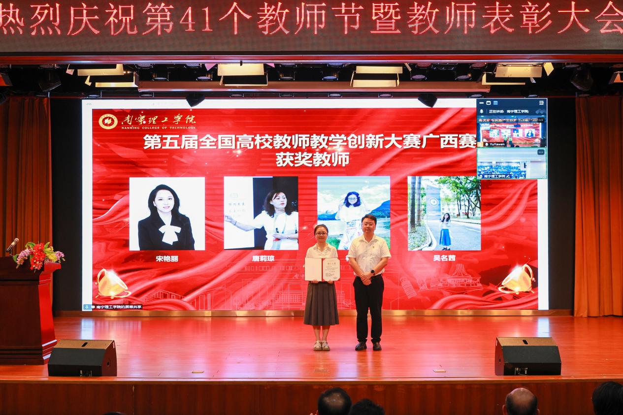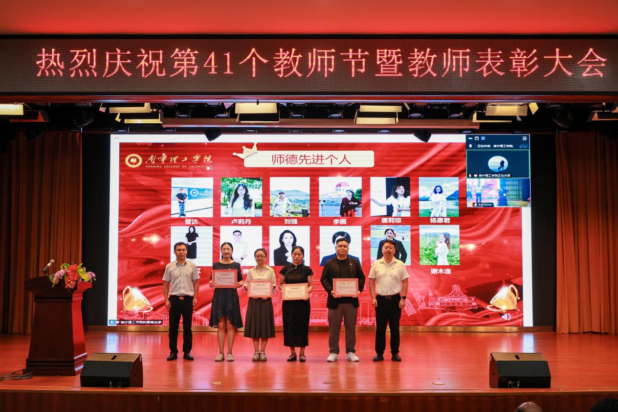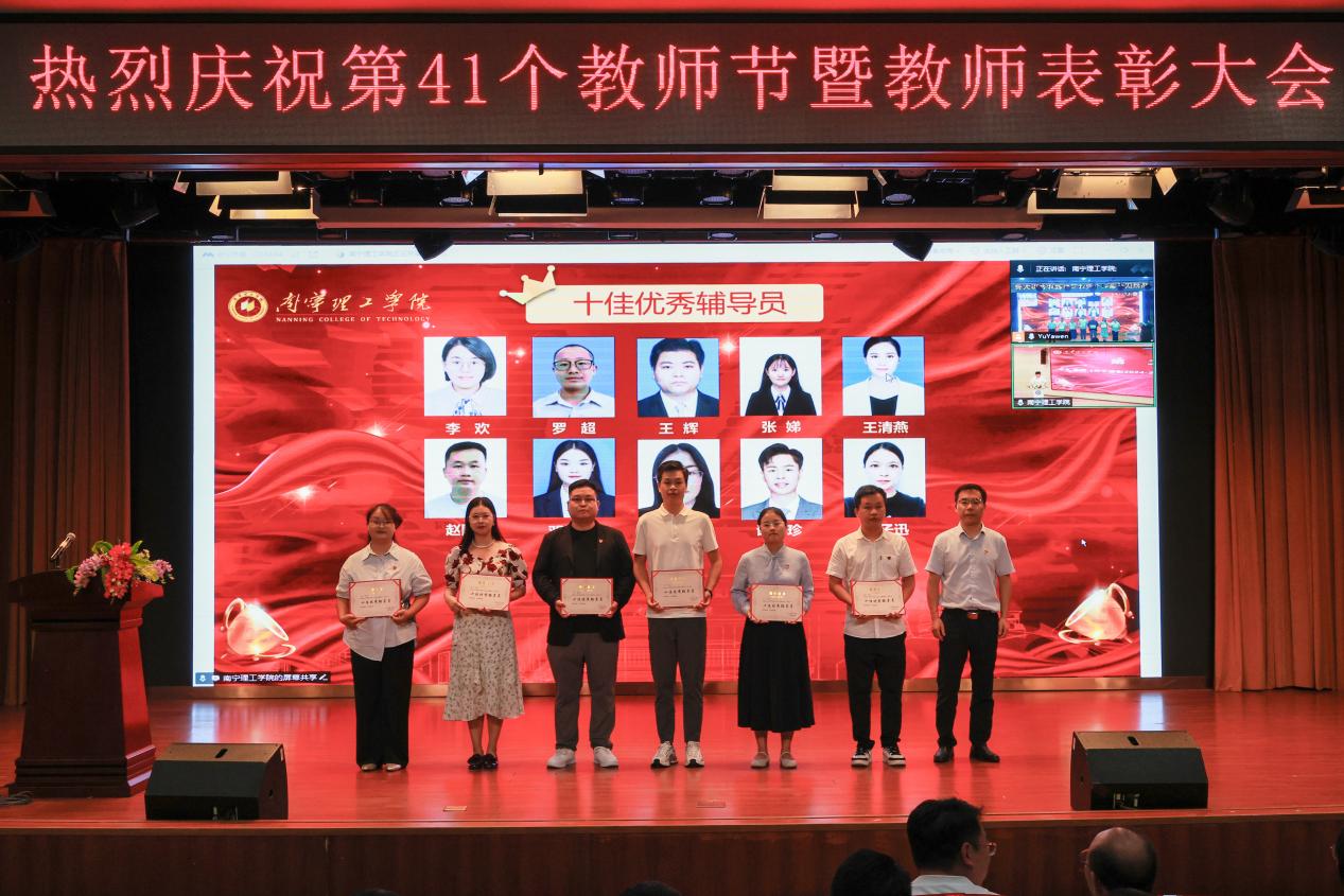 副校长杨鲜丽宣读《关于表彰2024-2025学年教学系列评先评优先进个人及先进集体的决定》;副校长、党委副书记韩乔宣读《关于表彰今年会jinnianhuicom2024-2025学年度“十佳优秀辅导员”的决定》;纪委书记、校长助理马纪涛宣读《关于表彰2024-2025学年科技先进个人的决定》;校长助理郑方兵宣读《广西高等教育学会关于公布第五届全国高校教师教学创新大赛广西赛区获奖结果的通知》和《广西壮族自治区教育厅关于公布新一轮自治区级实验教学中心建设名单的通知》;党委书记、督导专员金飞宣读《关于表彰2024-2025学年度“师德先进个人”的决定》。与会领导为获奖教师颁发荣誉证书,感谢他们为学校各项事业发展做出的贡献。