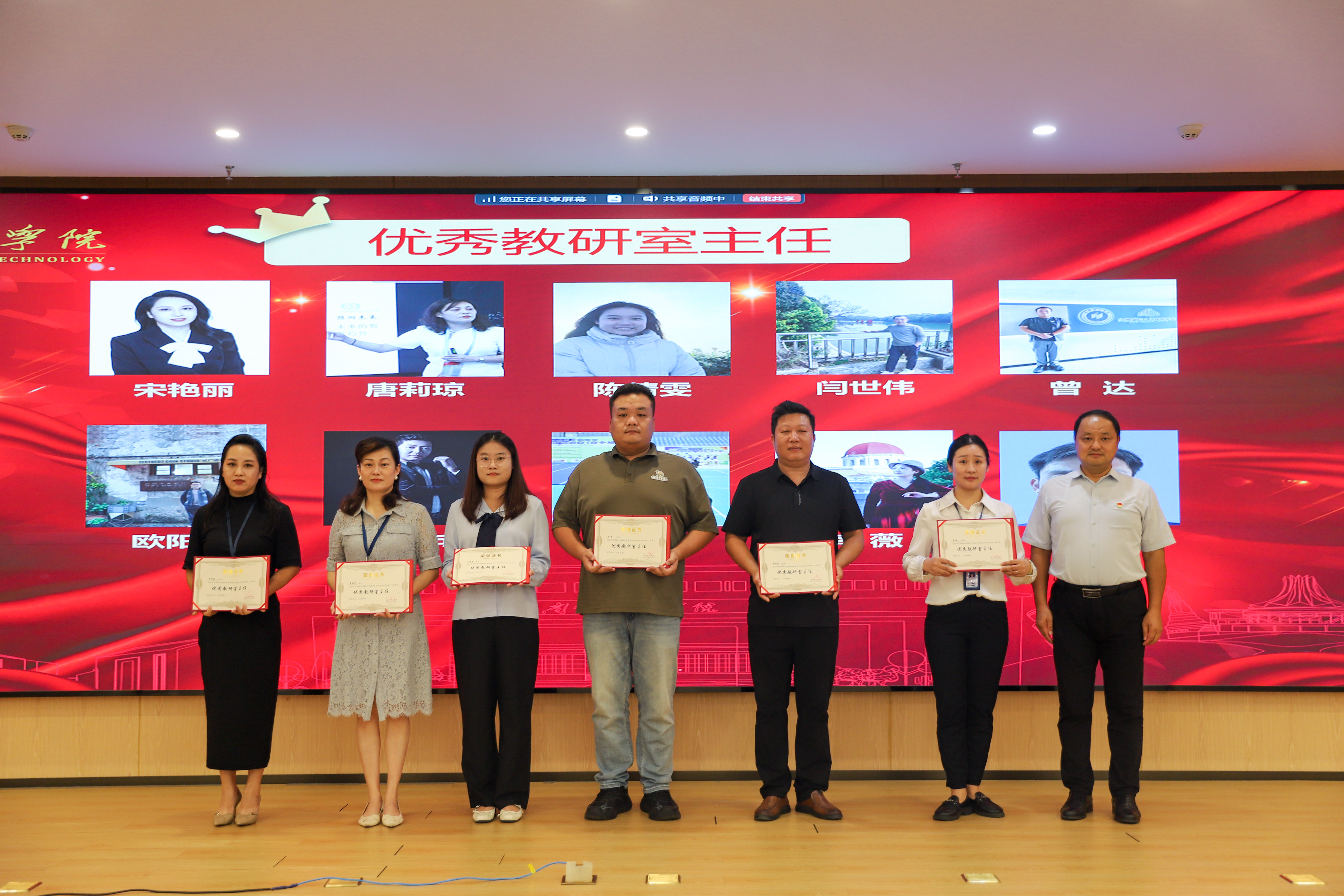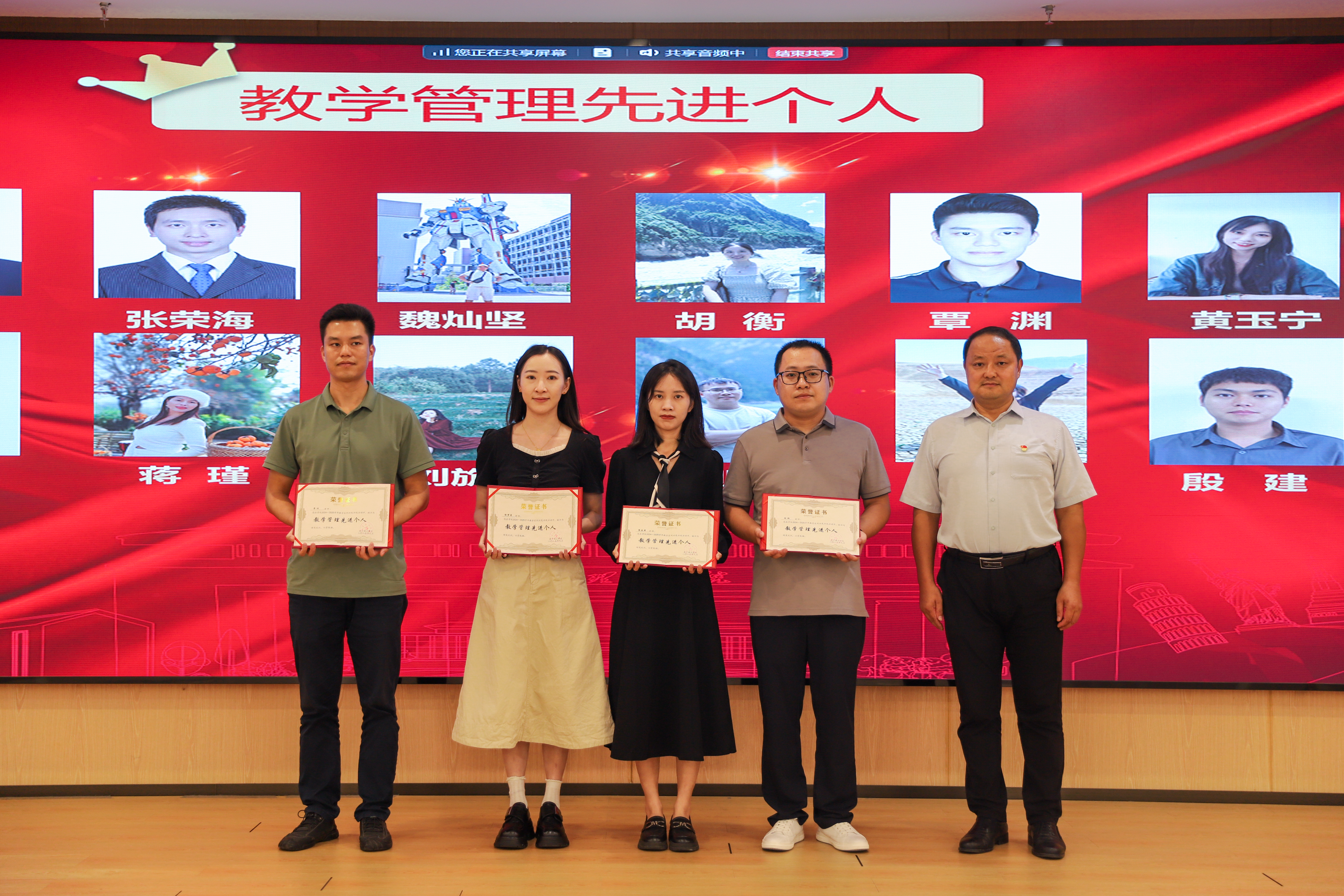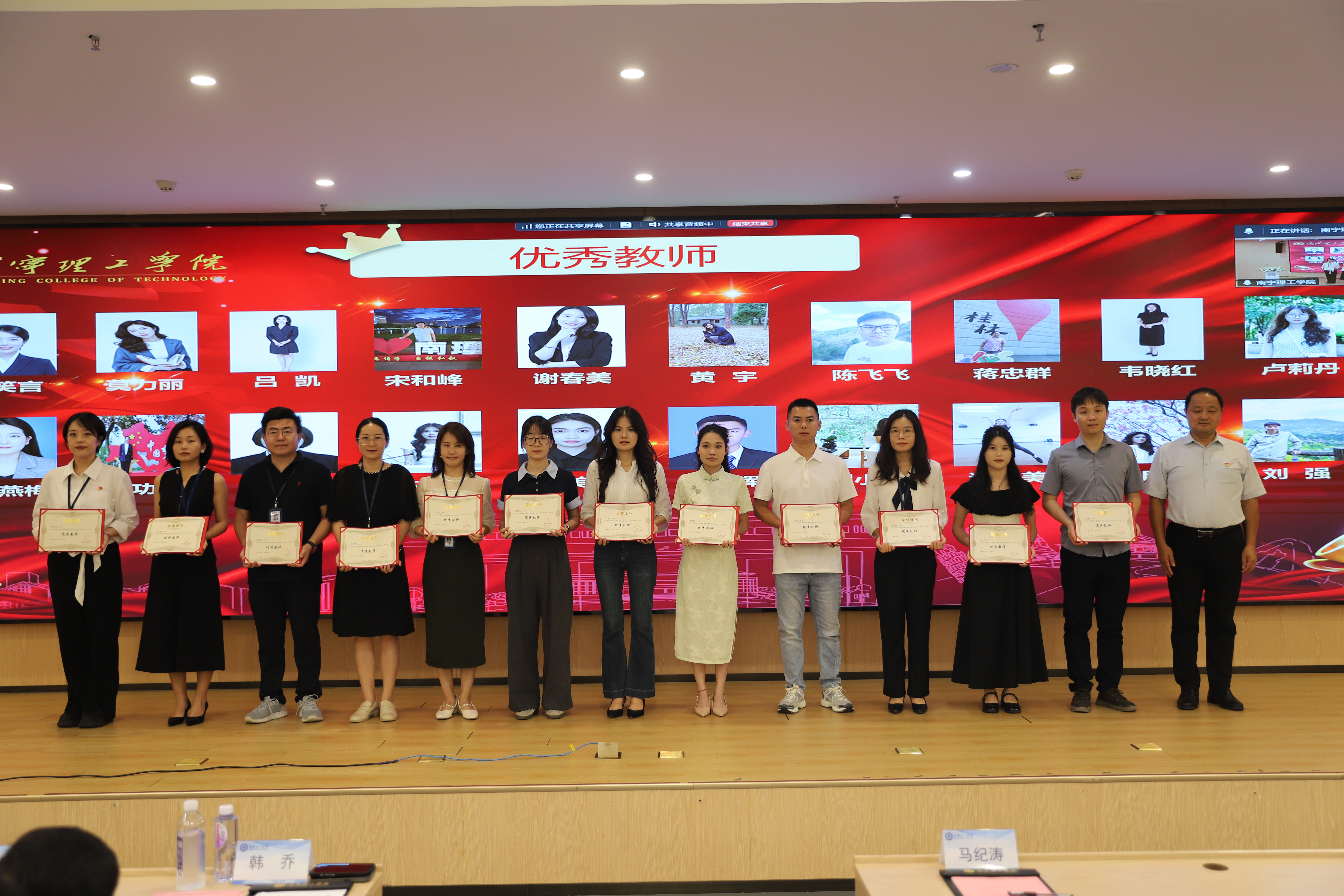 副校长杨鲜丽宣读《关于表彰2024-2025学年教学系列评先评优先进个人及先进集体的决定》;副校长、党委副书记韩乔宣读《关于表彰今年会jinnianhuicom2024-2025学年度“十佳优秀辅导员”的决定》;纪委书记、校长助理马纪涛宣读《关于表彰2024-2025学年科技先进个人的决定》;校长助理郑方兵宣读《广西高等教育学会关于公布第五届全国高校教师教学创新大赛广西赛区获奖结果的通知》和《广西壮族自治区教育厅关于公布新一轮自治区级实验教学中心建设名单的通知》;党委书记、督导专员金飞宣读《关于表彰2024-2025学年度“师德先进个人”的决定》。与会领导为获奖教师颁发荣誉证书,感谢他们为学校各项事业发展做出的贡献。