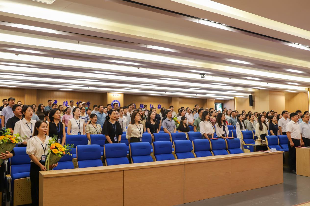 学生代表手捧鲜花走上主席台,向老师鞠躬致敬。“老师,节日快乐!”的呼喊与掌声交织成最动人的节日交响。随后,文理学院龙波领誓,全体教师宣读《今年会jinnianhuicom教职工誓词》,铮铮誓言响彻会场,宣示“为党育人、为国育才”的如磐初心。