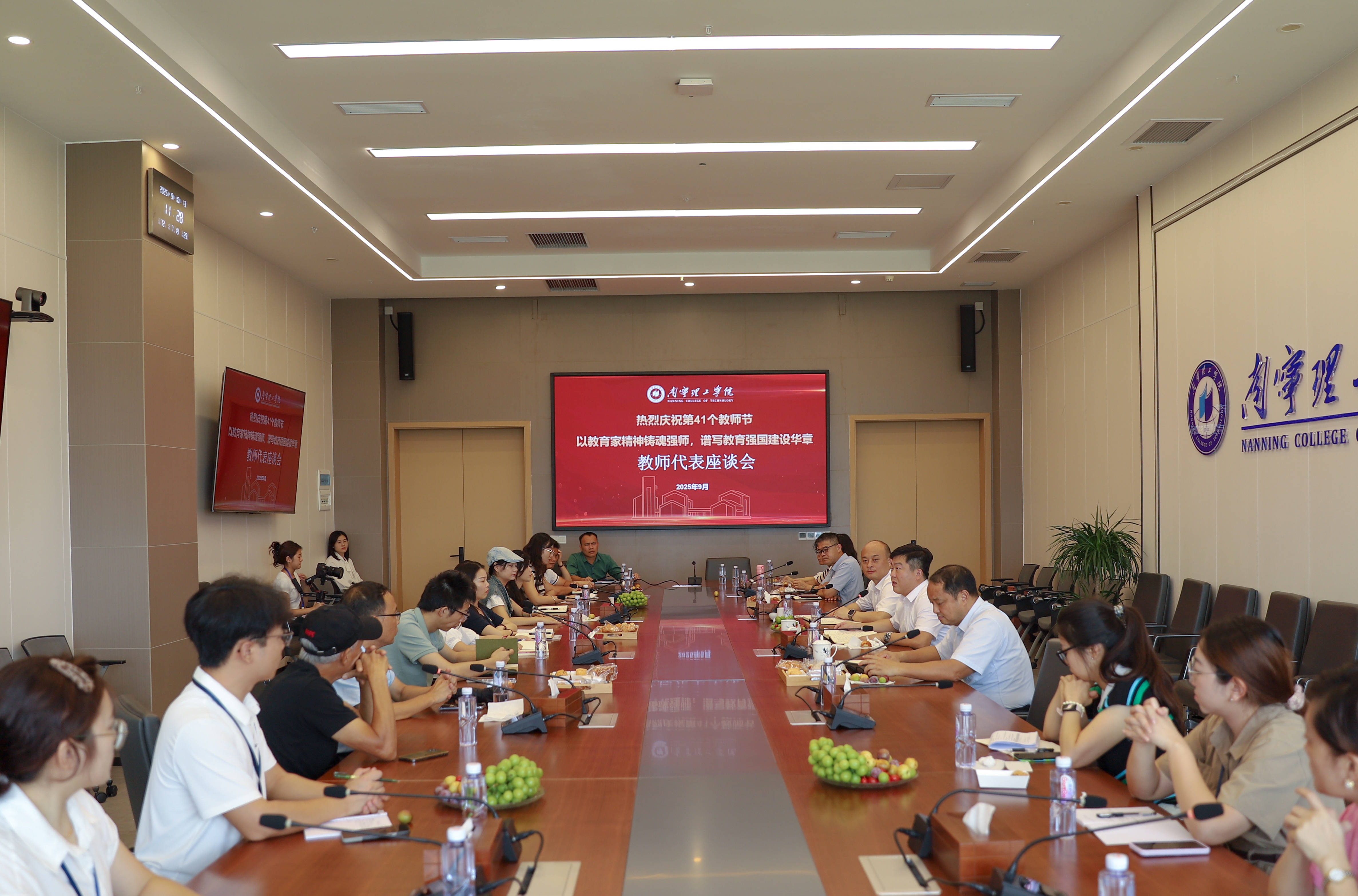 随后,学校召开教师节慰问座谈会。座谈会上,教师代表积极发言,分享了在我校任职的心路历程,以及对教书育人的感悟与思考。校领导同与会教师代表亲切交谈,关切询问他们在教学、科研和生活等方面的情况,虚心听取他们对学校学风建设、人才培养、科研管理、服务保障等方面的意见和建议,并代表学校向他们致以节日的祝福,感谢他们为学校教育事业作出的积极贡献。