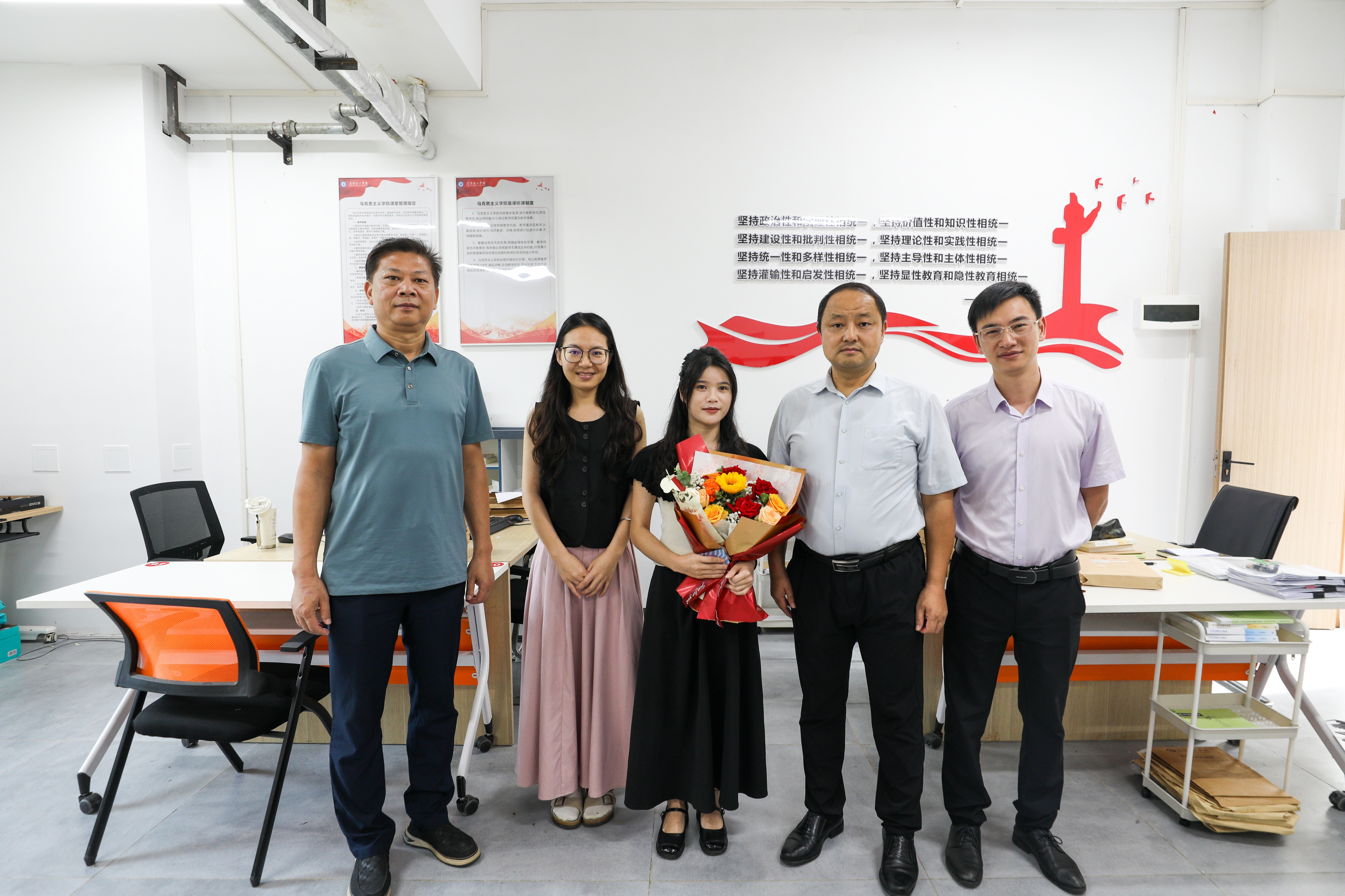 走访期间,校领导为辛勤耕耘的教师代表献上鲜花,与他们亲切交流,细致询问其工作与生活状况,并对大家在学校人才培养、科学研究和社会服务等方面作出的贡献表示高度肯定。“大家辛苦了,祝你们节日快乐!”一句句关怀与问候,凝聚着学校对广大教职工的深切敬意与暖心牵挂。