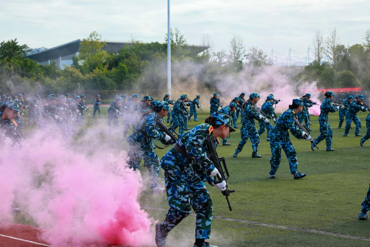 分列式结束后,参训学生演示了刺杀操、格斗术、战术变化、旗语、匕首操、战术运动方队等课目训练成果。少年们化身为战士,战术动作行云流水,每一个指令精准无误,每一次行动默契十足,彰显着“淬火成钢、青春飞扬”的豪情,展现着“强国有我,请党放心”的担当。