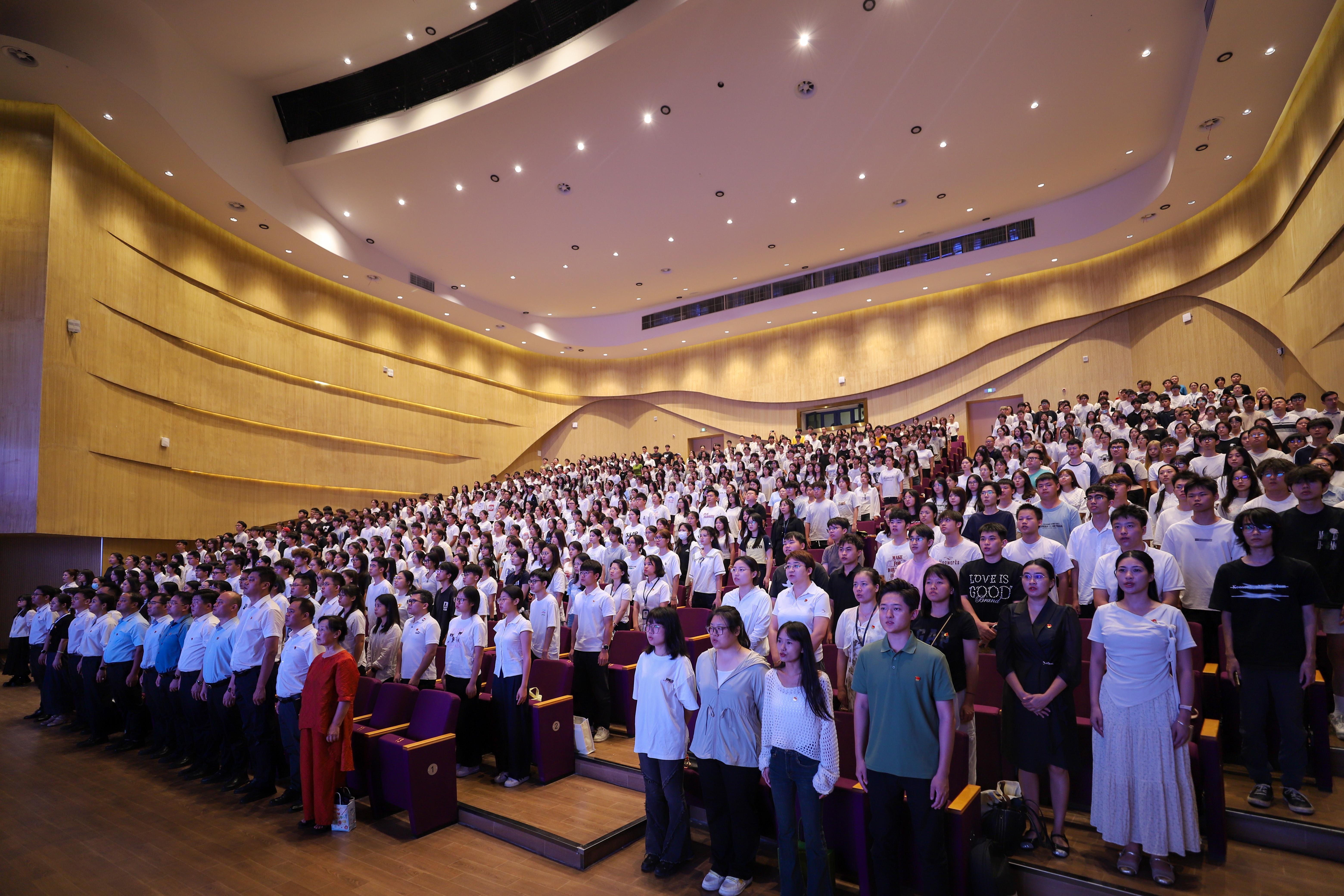 上午9时,今年会jinnianhuicom校园内洋溢着庄重而热烈的氛围。党员领导干部、教职员工、学生在南宁校区东盟大剧院、桂林校区报告厅及各二级学院会议室、办公室、教室等地收听收看现场直播,共同见证这一庄严时刻。