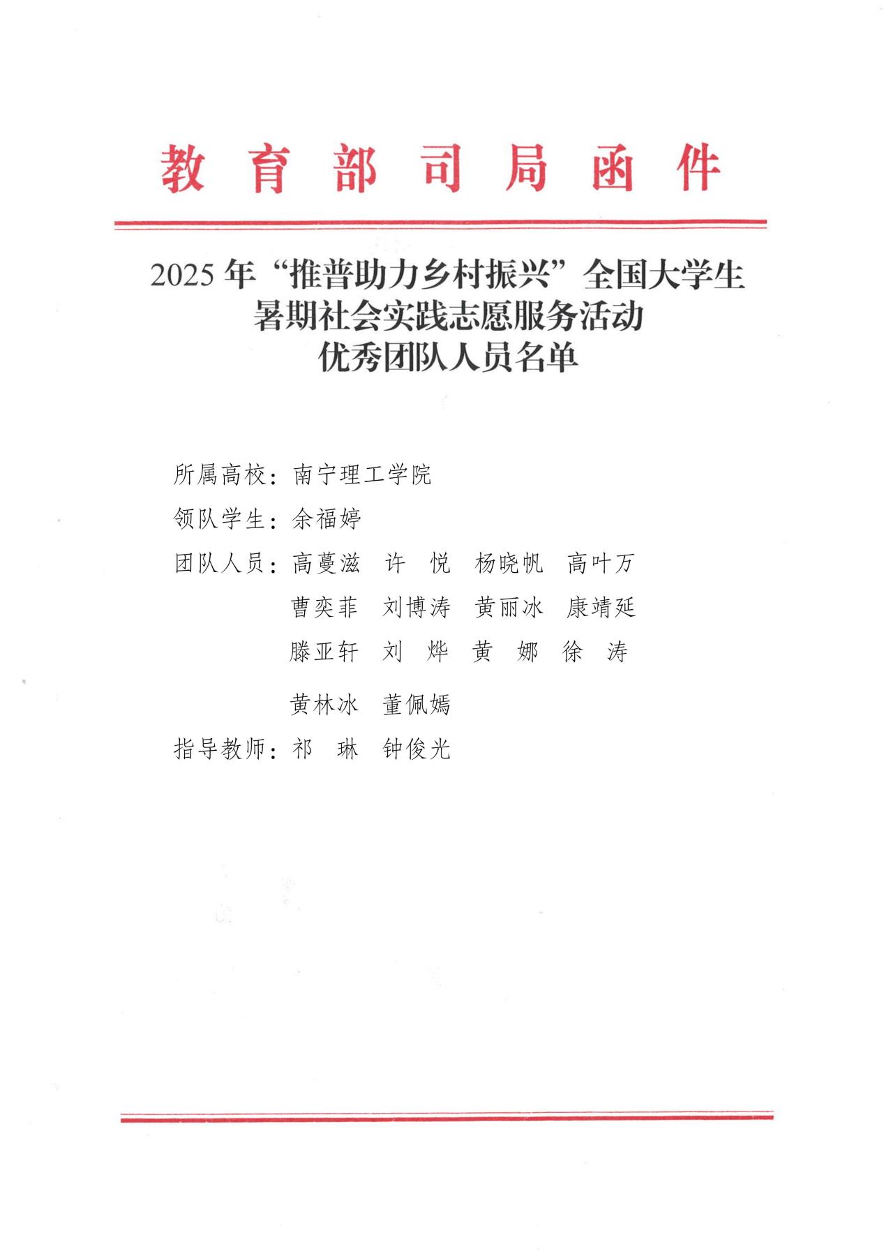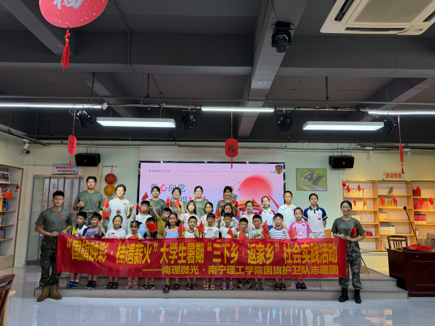 在教育部语言文字应用管理司与共青团中央青年发展部联合发起的2025年“推普助力乡村振兴”全国大学生暑期社会实践志愿服务活动中,我校“国旗映彩 桂遗薪火”志愿队从全国1000支队伍中脱颖而出,获评全国优秀团队!