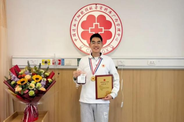 近日,我校信息工程学院2022级学生甘同学成功完成280ml造血干细胞混悬液采集,成为中华骨髓库第22101例、广西第775例、桂林市第96例非血缘造血干细胞捐献者,更是2026年桂林市首例非血缘造血干细胞捐献者。一份青春善举,跨越山海、直抵人心,为素未谋面的血液病患者点燃重生之光,也用最真挚的行动,诠释了南理青年的挺膺担当,彰显了学校立德树人、深耕公益育人的扎实成效。