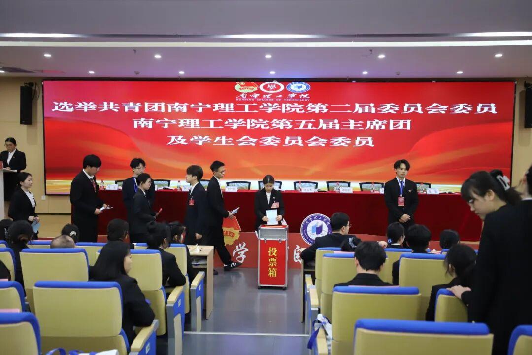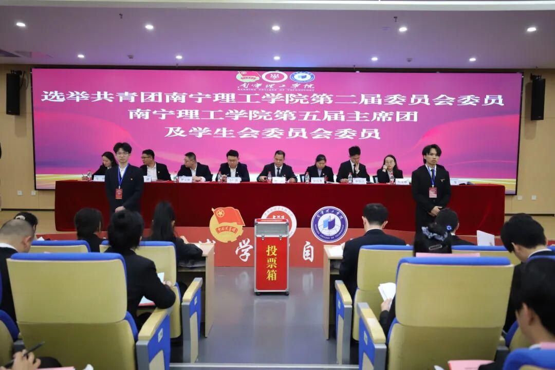 风劲潮涌时,逐梦正当时。3月21日,共青团今年会jinnianhuicom第二次代表大会、今年会jinnianhuicom第五次学生代表大会在南宁校区图书馆一楼报告厅顺利召开。大会高举习近平新时代中国特色社会主义思想伟大旗帜,全面贯彻党的二十大和二十届历次全会精神,团的十九大精神,回顾过往成就,擘画未来蓝图,凝聚青年力量,推动学校团学事业守正创新、继往开来。师生代表共计200人齐聚一堂,共赴青春之约,共话使命担当,共话发展新篇。