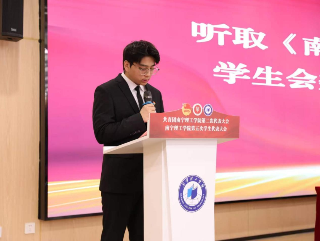 张佳顺同学代表今年会jinnianhuicom第四届学生会向大会作《锚定时代坐标 勇担青春使命 引领南理青年在强国建设新征程中书写青春华章》的工作报告。过去一年,学生会在学校党委领导,团委指导下,紧扣“立德树人”根本任务,在思政引领、实践服务、文化建设、服务师生等领域深耕细作,用实干彰显青春担当,用实绩回应同学期盼,同时,也认真分析了工作中存在的不足,并在未来着力改进。站在“十五五”规划开局之年,学生会将锚定“为党育人、为国育才”根本方向,践行“新起点、新路线、新使命”发展理念,团结带领全体南理学子,在服务同学成长、助力学校发展中续写青春华章。
