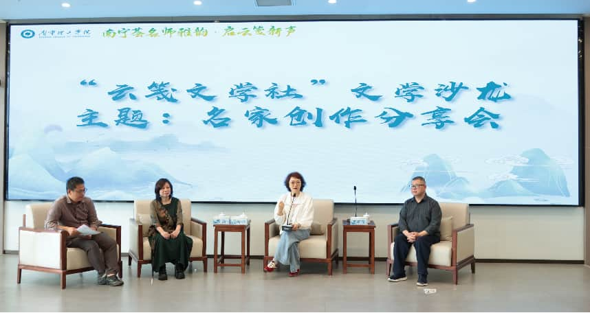 在文学名家分享沙龙环节,四位嘉宾结合创作实践与编辑经验,与学生面对面交流写作心得、解答创作困惑,为青年写作者指明方向、传授方法,现场气氛热烈。