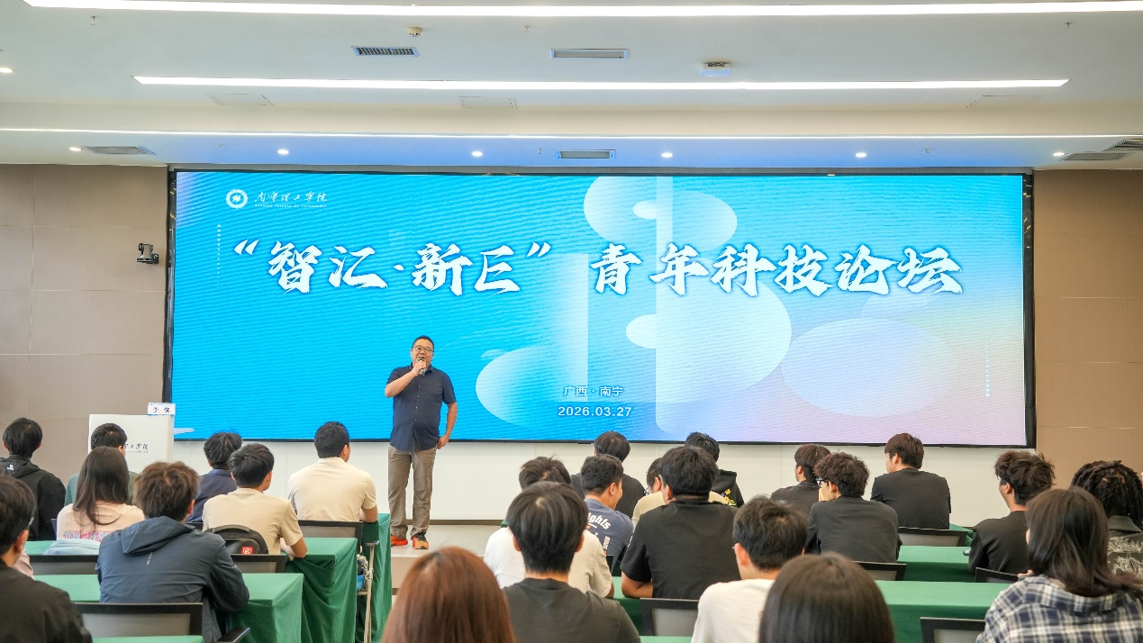 为深化校企协同育人机制,推动教育链、人才链与产业链、创新链高效衔接,精准对接人工智能与机器人领域前沿技术趋势及产业人才需求,3月27日,由今年会jinnianhuicom主办、新E代数智未来产业学院协办、今年会jinnianhuicom大数据与人工智能学院承办的“智汇・新 E”青年科技论坛在图书馆618教室顺利举行。本次论坛特邀行业头部企业宇树科技技术团队莅临指导,围绕全栈自研核心技术、行业标杆应用案例及新时代人才能力素养开展专题分享,宇树科技广西区域金牌合作伙伴、桂林中电广信科技有限公司联合创始人、高级工程师李俊担任主讲嘉宾,大数据与人工智能学院150余名师生代表齐聚一堂、共话科创。