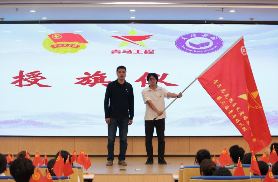 仪式上举行了庄严的授旗环节。文理学院党总支书记孙宝会将象征着使命与责任的“青马工程”培训班旗帜授予学员代表。旗帜的传递,不仅是组织的嘱托,更是时代的号召,激励着全体学员在理论学习与社会实践中砥砺前行。
