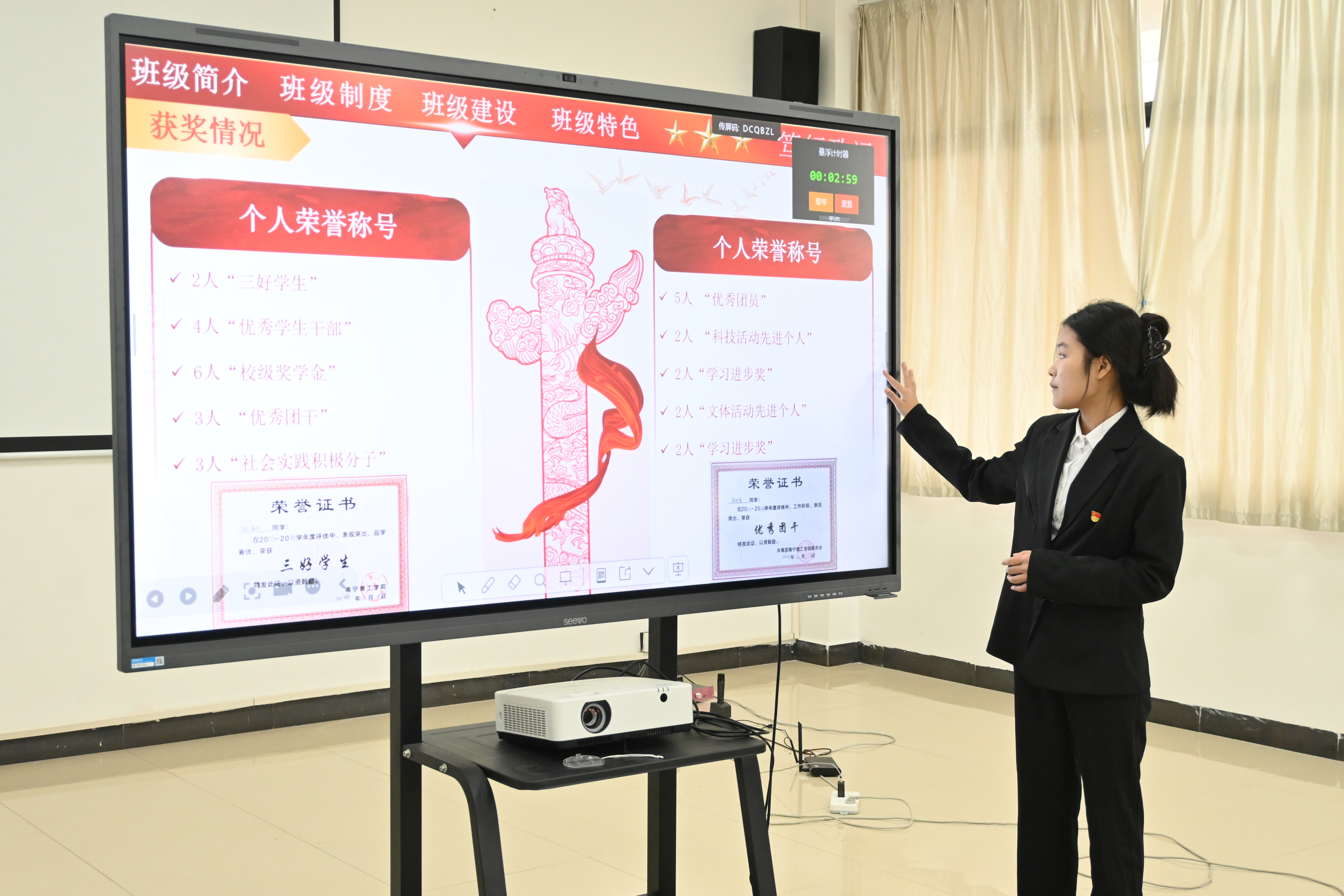 此次评选活动从班级组织建设、班级日常工作、班集体素养建设、申报材料展示、 PPT 展示五个维度展开。在 “班级组织建设” 环节,各班级展现出的健全组织架构与高效协作能力,彰显了基层班集体的凝聚力;在“班级日常工作” 方面,各班级展示了班级管理的规范化与精细化;在“班集体素养建设”中,各班级用实际行动诠释了全面发展的育人理念;“申报材料及 PPT 讲解” 则考验了班级的总结提炼与表达能力。通过多维度的评选,不仅让优秀班级的建设成果得以充分展示,更让其他班级在对比中找准差距、明确方向,形成 “比学赶超” 的良好氛围。