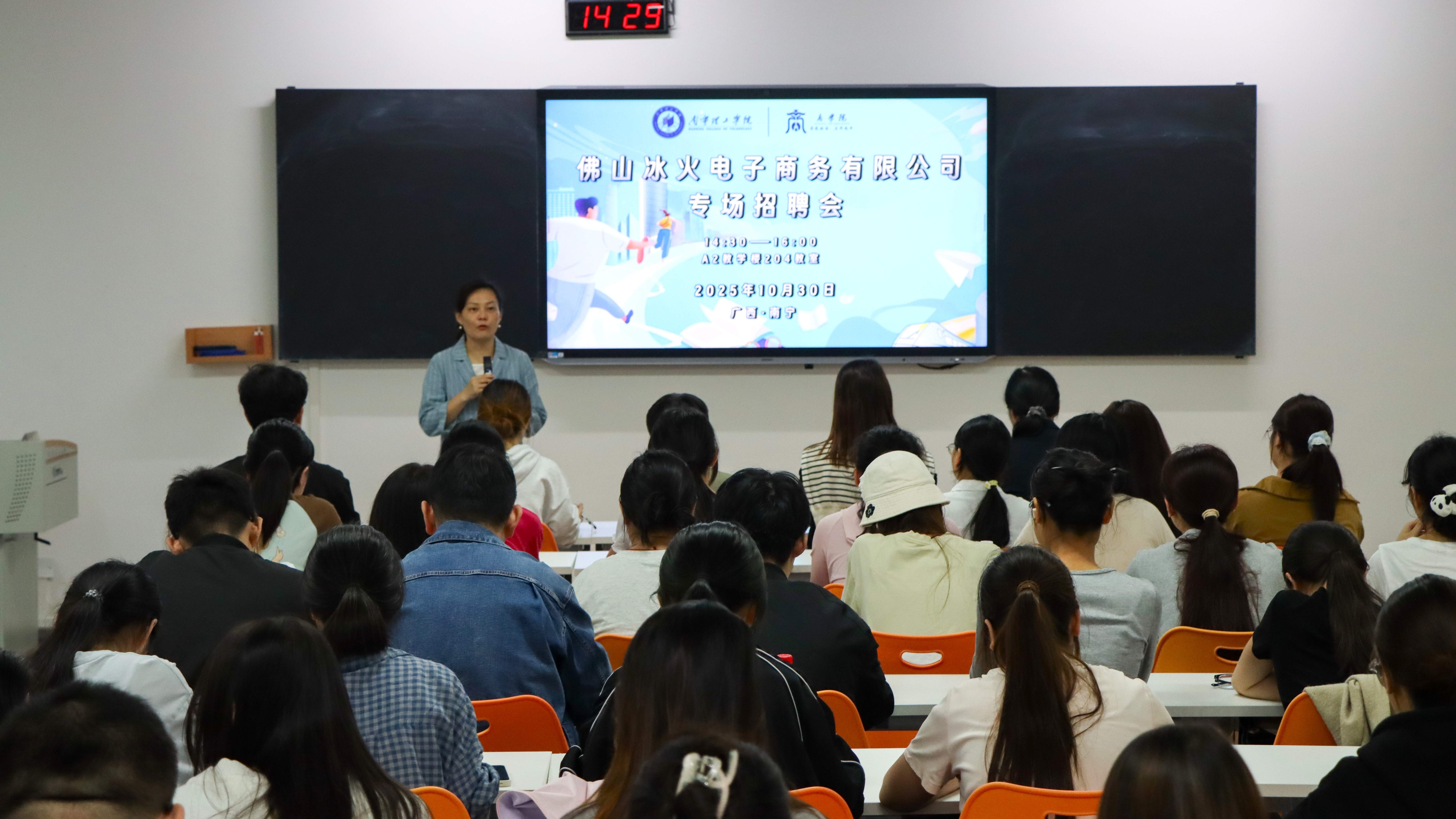 为促进校企合作,搭建高校毕业生与优质企业之间的沟通桥梁,助力电商应用型人才培养,佛山冰火电子商务有限公司于10月30日下午在A2204教室成功举办了校园专场招聘宣讲会。众多对电商行业感兴趣的学子积极参会,现场气氛热烈。