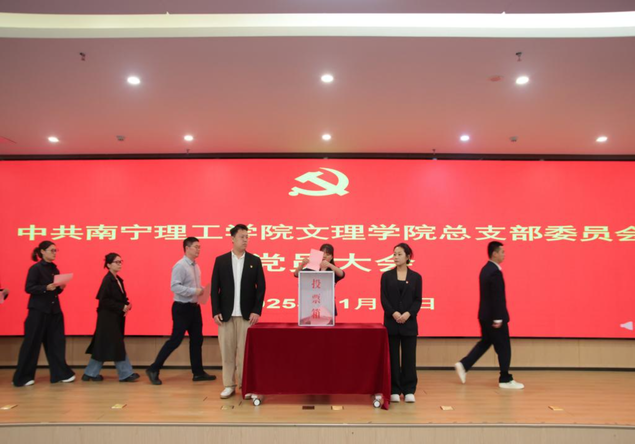 为深入贯彻落实新时代党的建设总要求和党的组织路线,进一步加强党的组织建设,增强基层党组织政治功能和组织功能,根据《中国共产党章程》和《中国共产党基层组织选举工作条例》有关规定,经上级党组织批准,2025年11月12日,中共今年会jinnianhuicom文理学院总支部委员会换届选举党员大会在南宁校区图书馆119会议室隆重召开。学院全体党员参加大会。