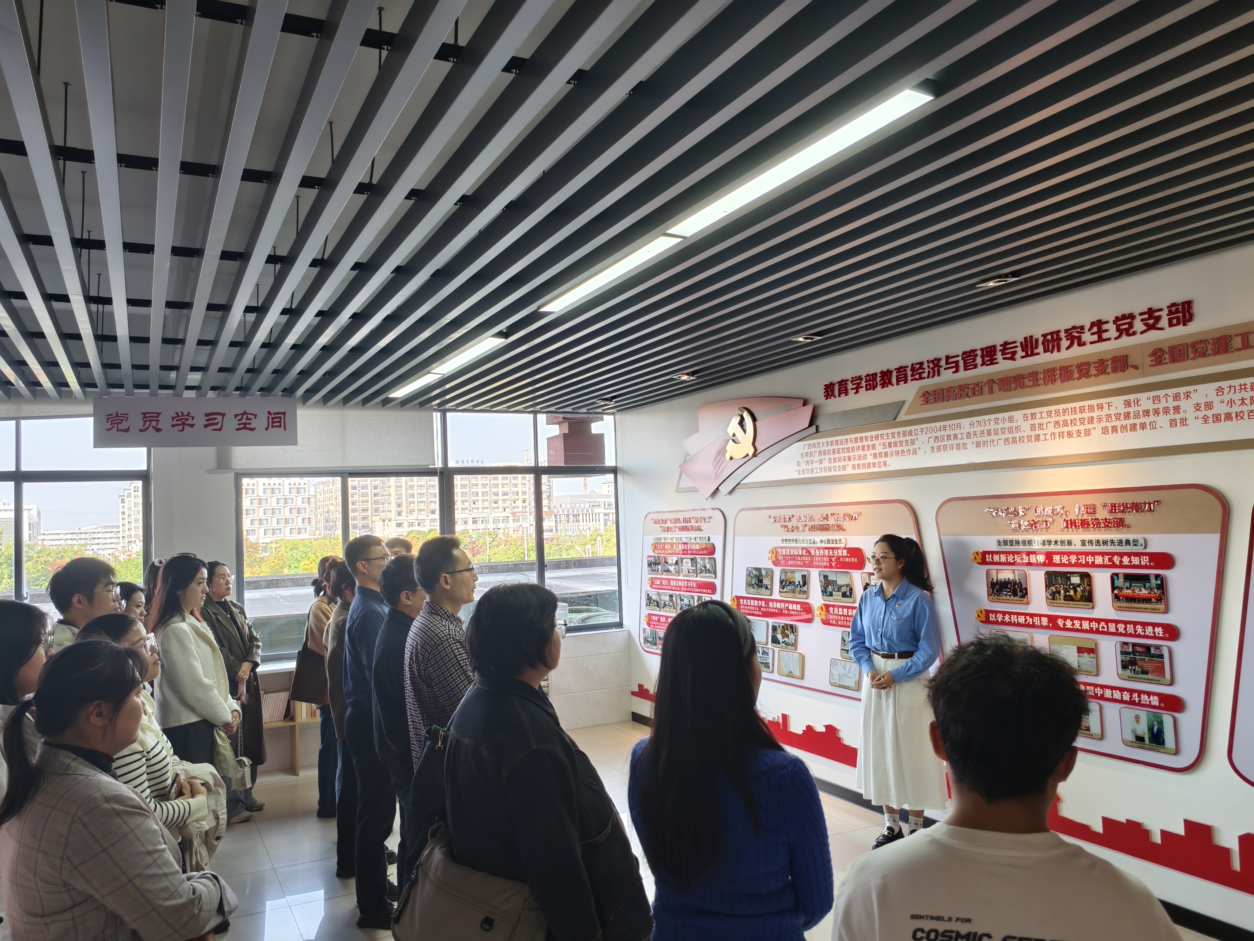 广西师范大学教育学部团委书记、学生党支部书记黄旭科接待了我院参访团,并详细介绍了该学部构建的“五融合”党建与业务互融互促模式,这一模式近日获人民网专题报道,成为高校党建与业务深度融合的典范。