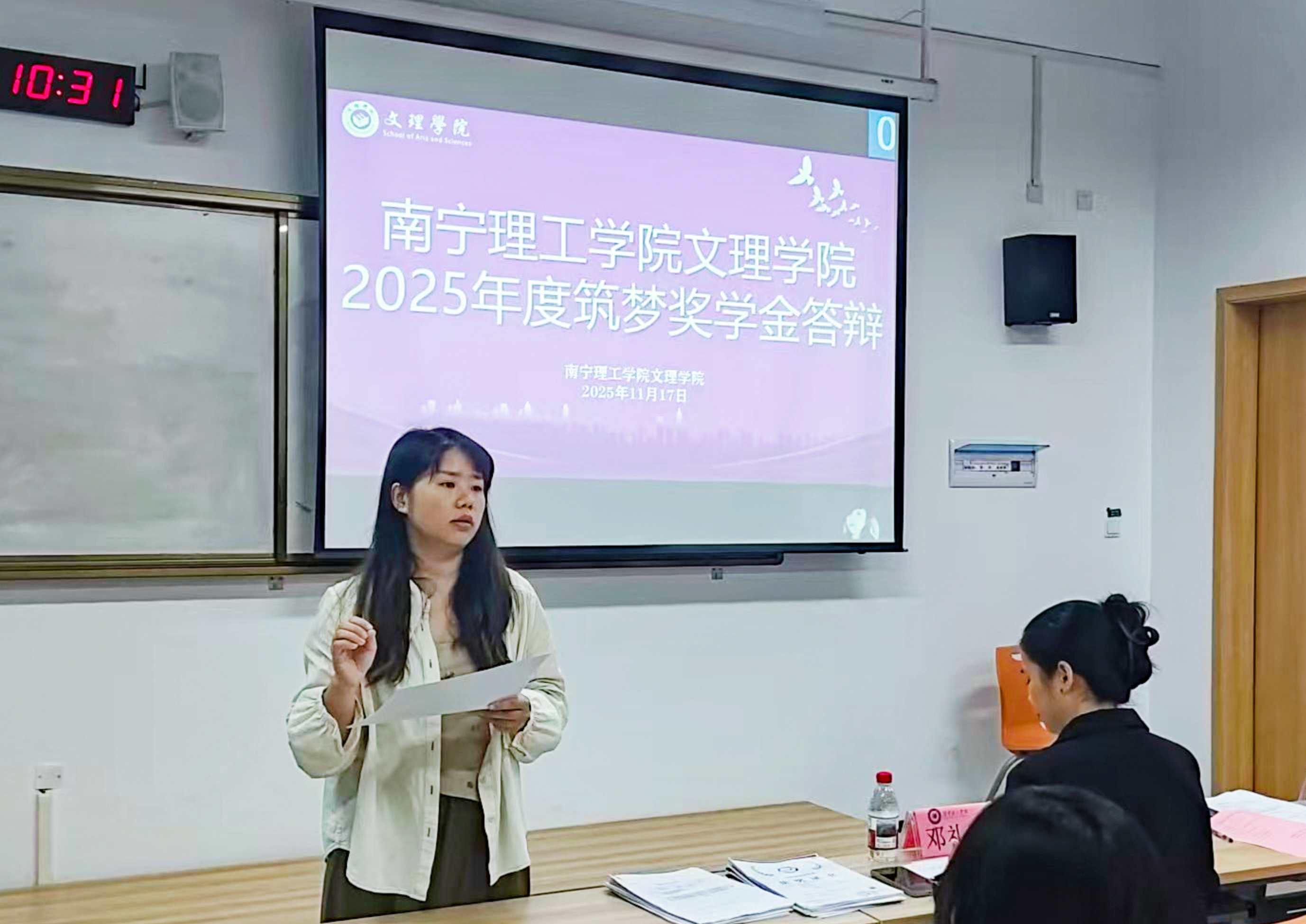 为落实立德树人根本任务,助力教育高质量发展。11月17日上午,文理学院2025年度筑梦奖学金答辩会在A3举行。文理学院党总支书记助理覃远清、团委书记仝广凯及辅导员黄芳琴、张睿冬、玉丹娜、邓礼玉组成评审团,对通过资格审核的候选人进行综合考评,部分学生代表到场观摩学习。
