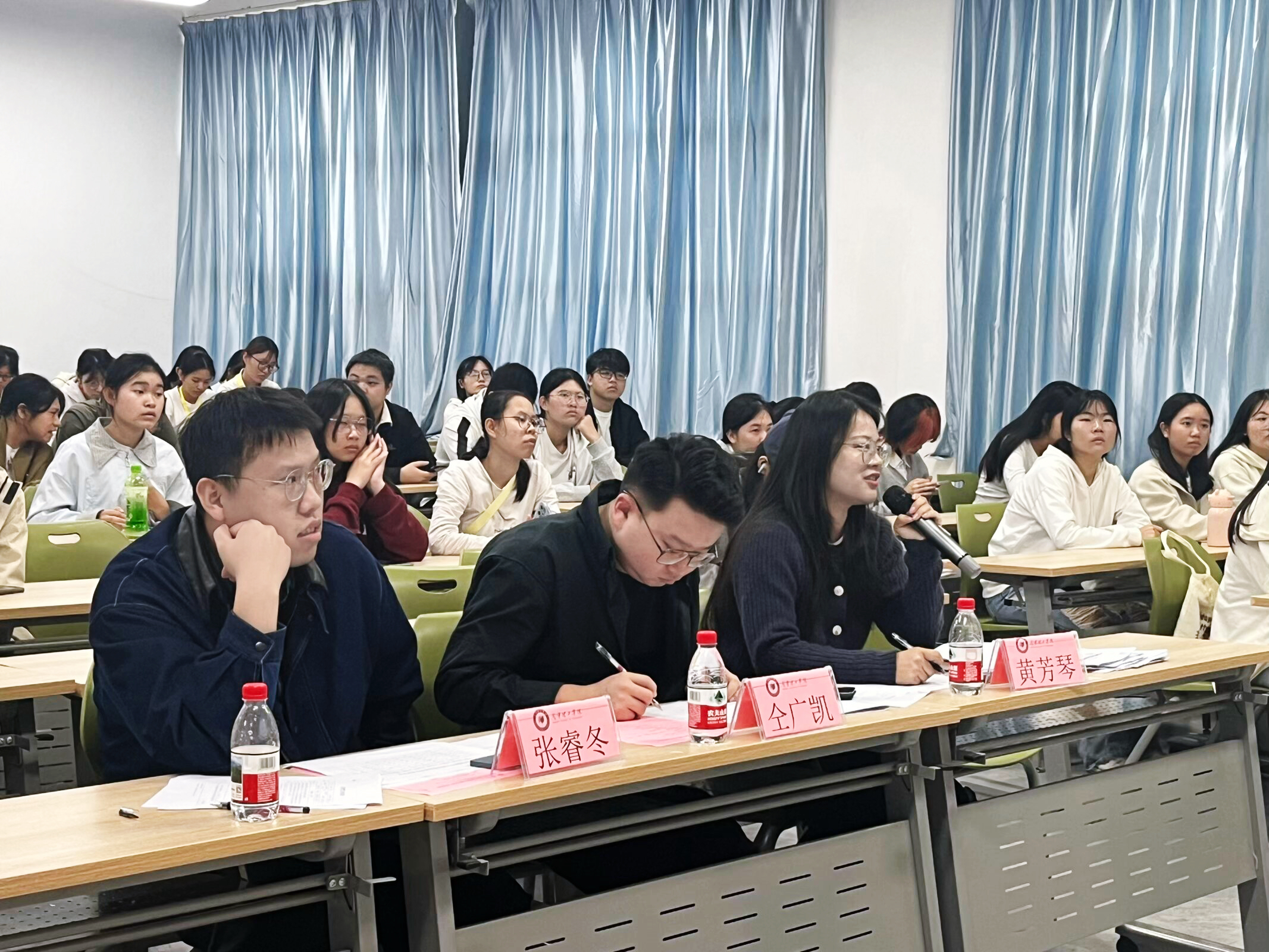 评委提问环节,评审团结合候选人陈述内容进行提问,既关注专业知识掌握程度与实践成果实效,也重视其逻辑思维、应变能力与价值追求。随后,评委们针对性地提出学术拓展、实践优化等建议,为学子后续成长提供了宝贵建议。
