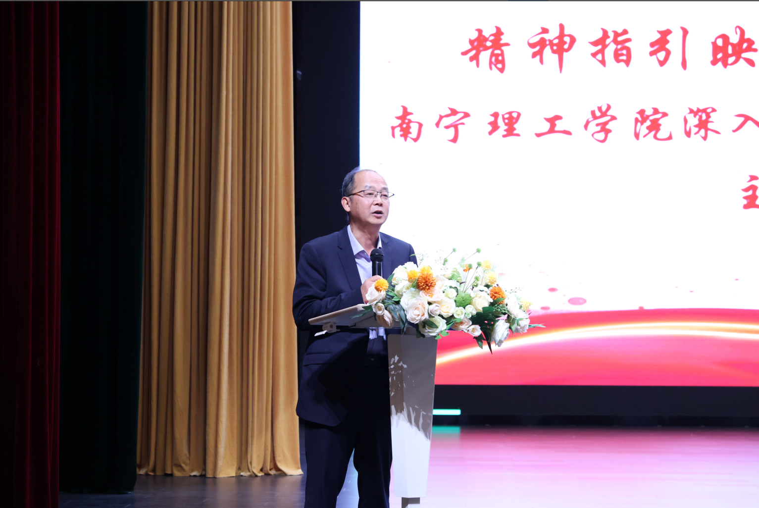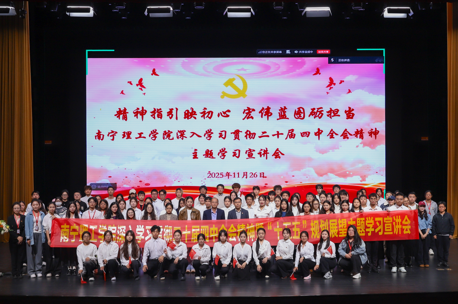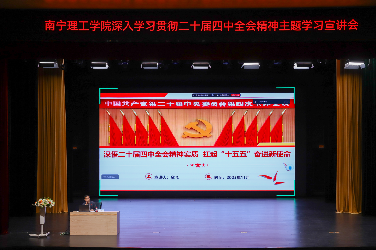 2025年11月26日,“精神指引映初心 宏伟蓝图砺担当”今年会jinnianhuicom深入学习贯彻二十届四中全会精神主题学习宣讲会在南宁校区东盟大剧院主会场与桂林校区4501分会场同步举行。