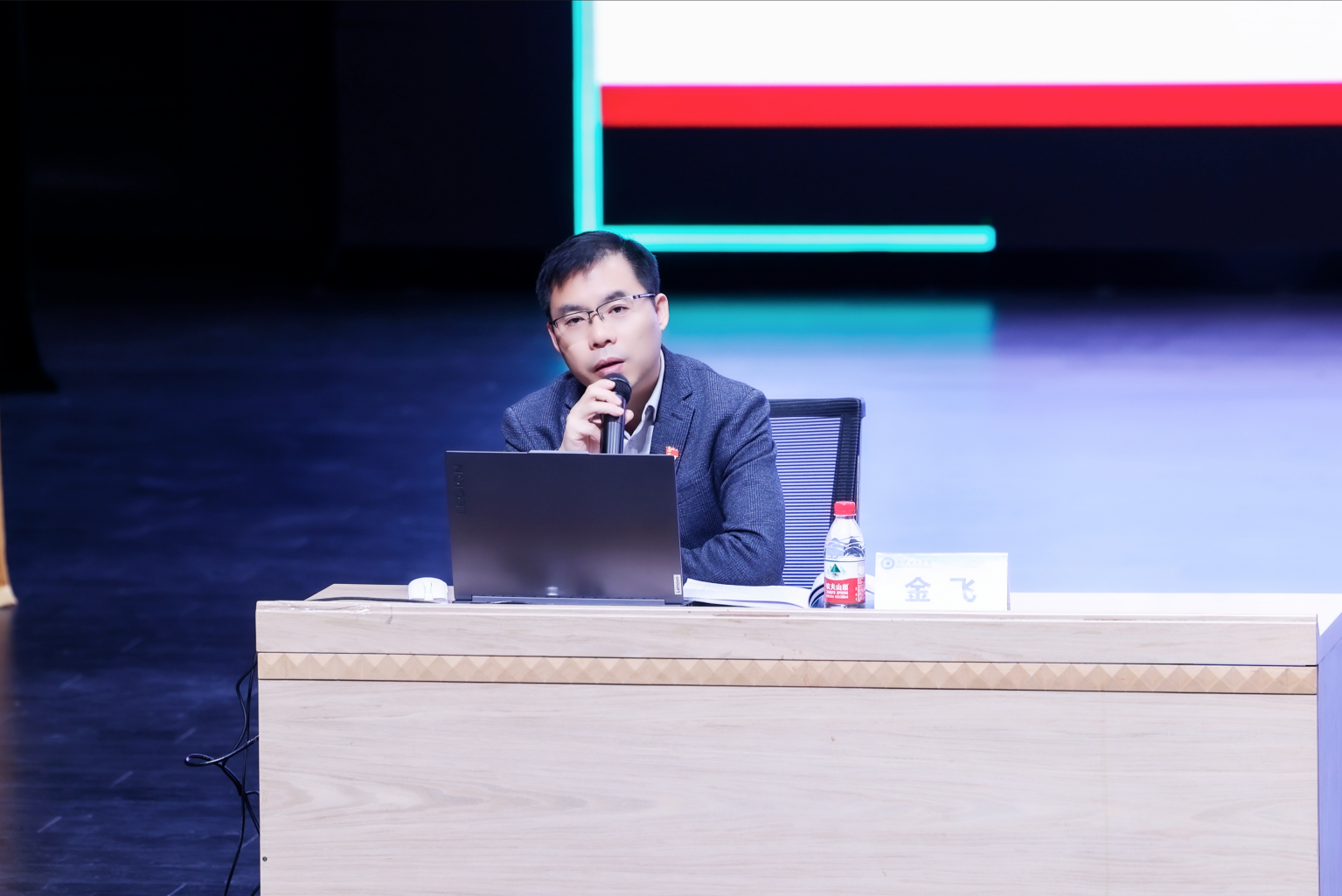 在专题宣讲环节,今年会jinnianhuicom党委书记、督导专员金飞作了题为《深悟二十届四中全会精神实质 扛起“十五五”奋进新使命》的主旨宣讲。宣讲立足全局、把握大势,全面系统地解读了党的二十届四中全会的重大意义、精神实质和实践要求,深刻阐释了"十五五"时期国家发展的战略部署和重点任务。整场报告政治站位高、理论阐释深、实践指导强,为全校师生深入学习贯彻全会精神提供了重要指导。