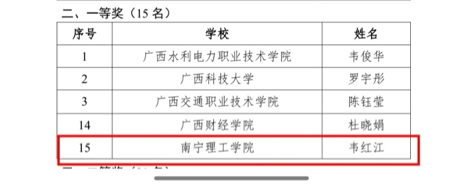 近日,自治区教育厅公布了2025年广西高校大学生心理健康教育课教师教学能力大赛获奖名单。我校学生工作部(处)大学生心理健康教育与咨询中心教师韦红江主讲的《拾情绪微光,赴青春心航——大学生情绪管理三阶课》荣获一等奖,实现了学校在该项赛事中的历史性突破。