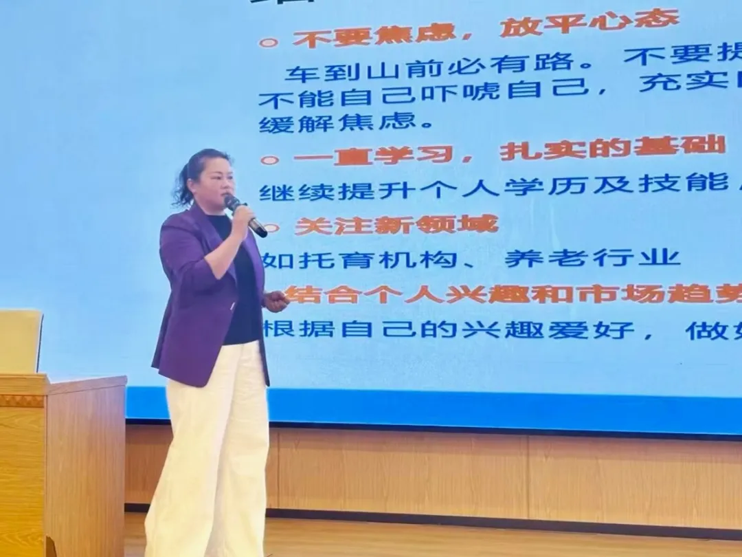 讲座伊始,钟园长结合当前幼教行业政策导向与市场需求,深入剖析了“幼教蓝海”的发展潜力。她指出,随着三孩政策的落地与家长对学前教育重视程度的提升,幼教行业正迎来专业化、精细化发展的新机遇,同时也对从业者的综合素养提出了更高要求。随后,她围绕“职业核心能力培养”“幼儿行为观察与引导技巧”“家园共育实践方法”等关键内容展开讲解,并结合自身多年一线教学与管理经验,分享了多个生动鲜活的案例,让在场学生对幼教工作的职责与价值有了更直观的认识。