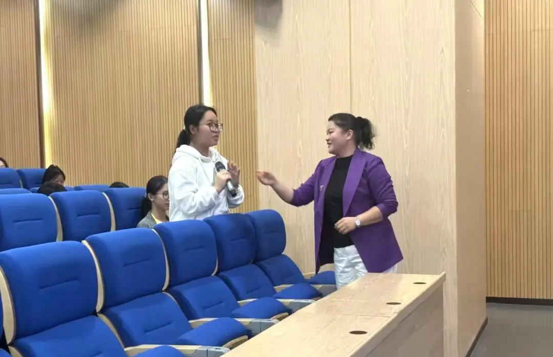 互动环节中,同学们踊跃提问,就“幼教岗位求职准备”“职业发展路径规划”等问题与嘉宾展开热烈交流。钟园长耐心细致的解答,为同学们拨开了职业发展的迷雾,提供了切实可行的建议。现场掌声阵阵,气氛热烈。