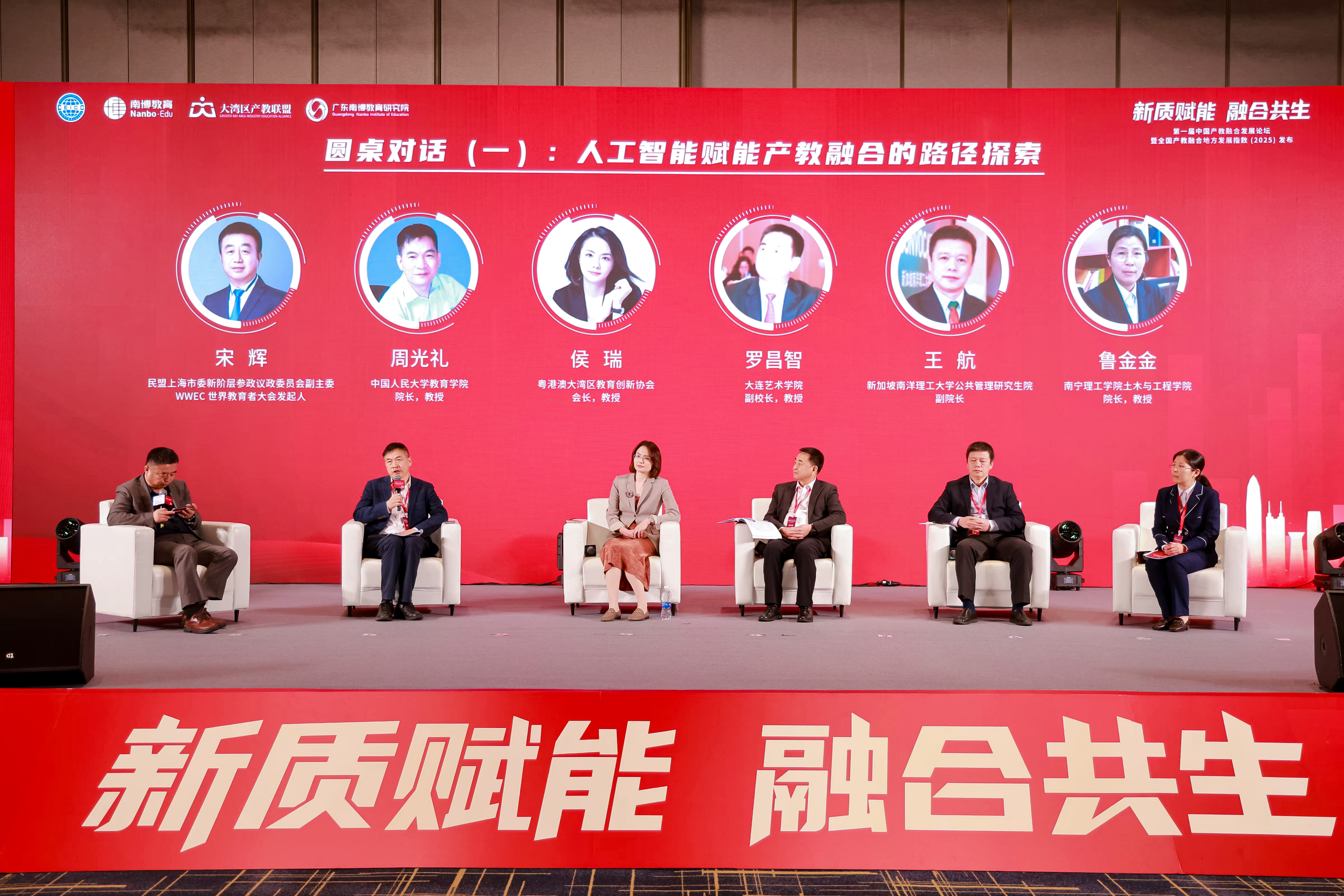 论坛开幕式由全国政协委员曾瀞漪与广东南博教育研究院执行院长邱林润教授共同主持。全国人大代表翟志海、南博教育总校长仲伟合教授、中国教育后勤协会会长田福元等嘉宾先后致辞,新东方创始人俞敏洪亦通过视频致辞,共同强调了深化产教融合对于国家经济社会发展的重要性。