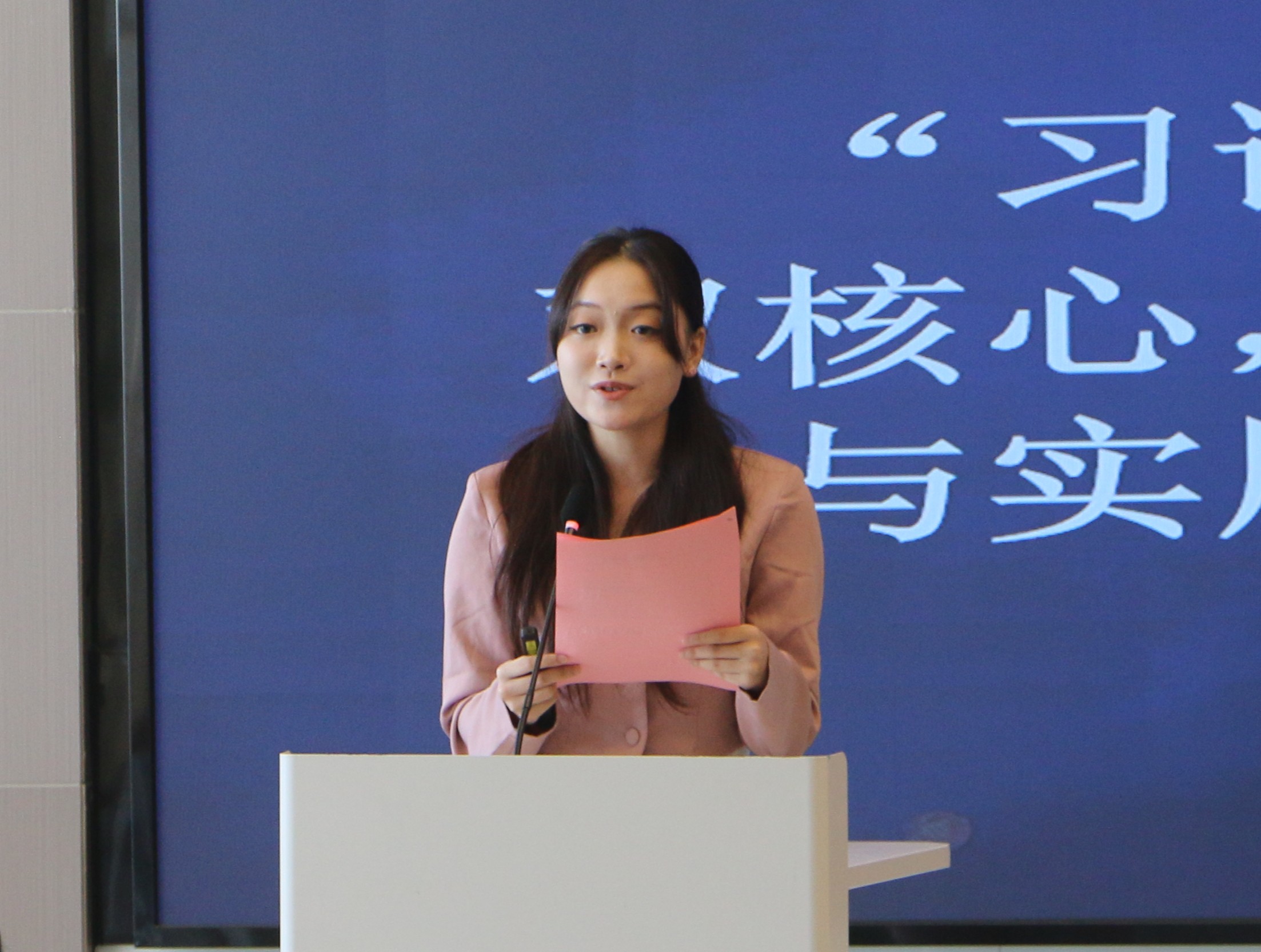(图3 学生会轮值主席彭双双介绍核心活动)