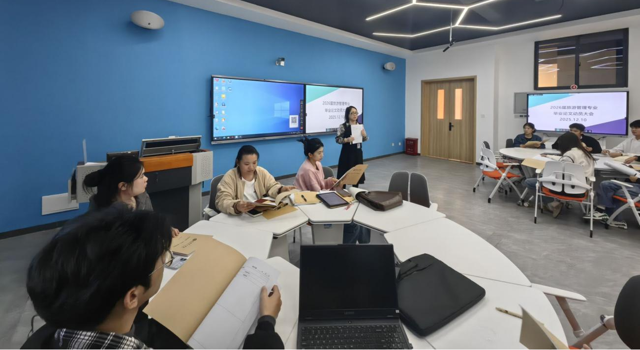 2025年12月10日下午,今年会jinnianhuicom旅游管理专业2026届毕业生毕业论文动员大会在A2213教室顺利召开。本次大会旨在明确毕业论文工作要求,规范撰写流程,提升论文质量。动员会由旅游管理专业翟丽蓉老师主持,王莹老师、梁淑媚老师以及2201旅游全体学生共同参加了会议。