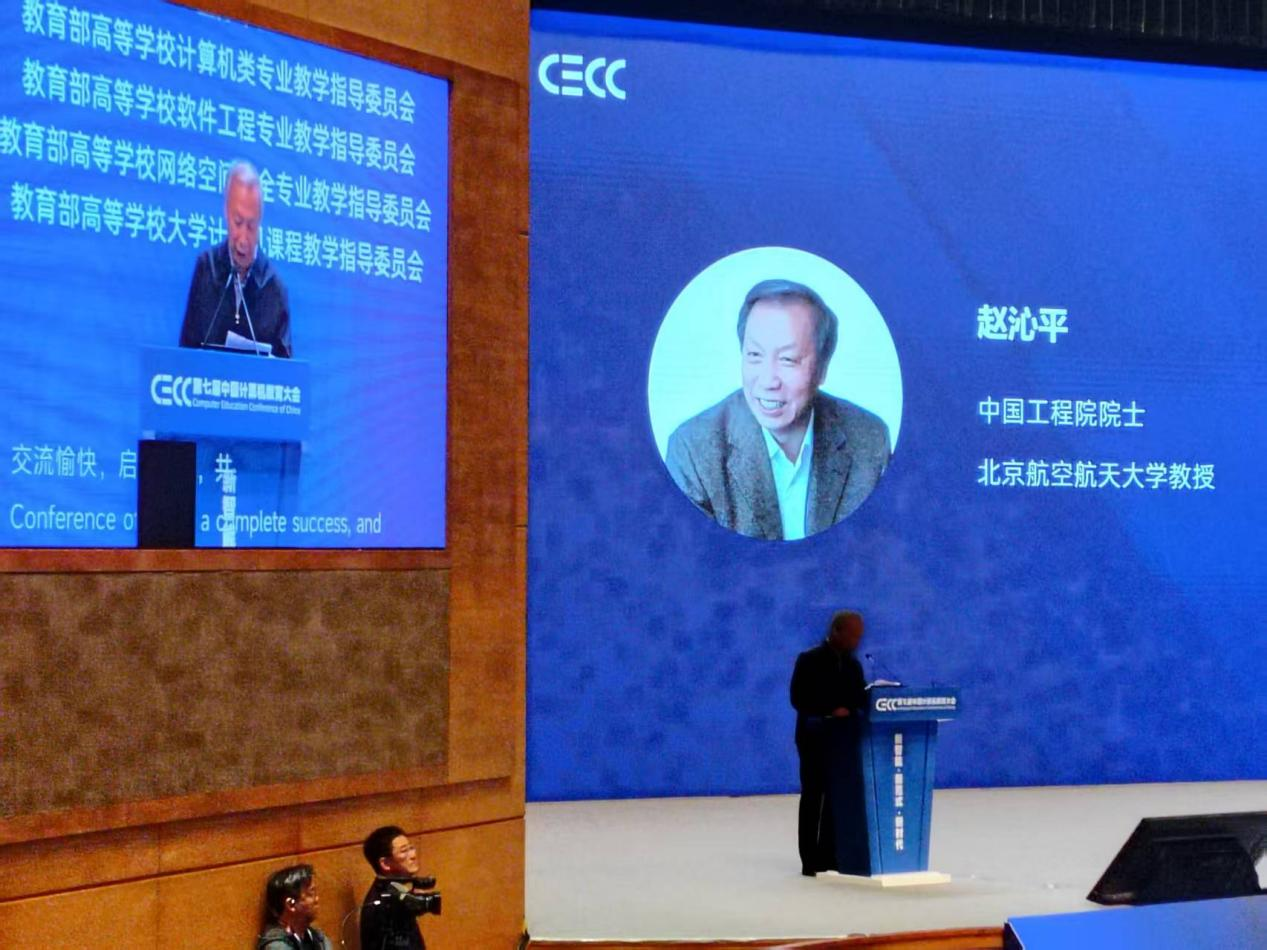大会开幕式上,教育部领导、中国工程院院士赵沁平、吴建平等嘉宾先后致辞,强调了人工智能时代计算机教育的重要性与紧迫性。美国康奈尔大学名誉教授John Hopcroft、中国工程院院士何友、中国科学院院士王小云等专家分别作了精彩的主题报告,围绕“Proj 101: Improving University Education in China”、“AI 赋能智慧教育”、“密码技术与人工智能安全”等前沿议题分享了真知灼见。这些报告与今年会jinnianhuicom新E代数智未来产业学院和信息工程学院“以产业需求为导向,培养应用型技术人才”的办学理念高度契合。