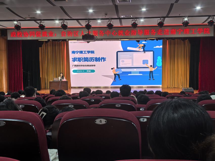 5月15日,自治区人才服务中心“就业指导服务进校园”活动在我校1626报告厅顺利举行。广西人才网资深就业指导专家蒋敏应邀为土木与工程学院学子带来了一场题为“求职简历制作”的专题讲座,旨在帮助学生提升求职竞争力,从容应对就业挑战。讲座由学院就业负责人郭静老师主持。
