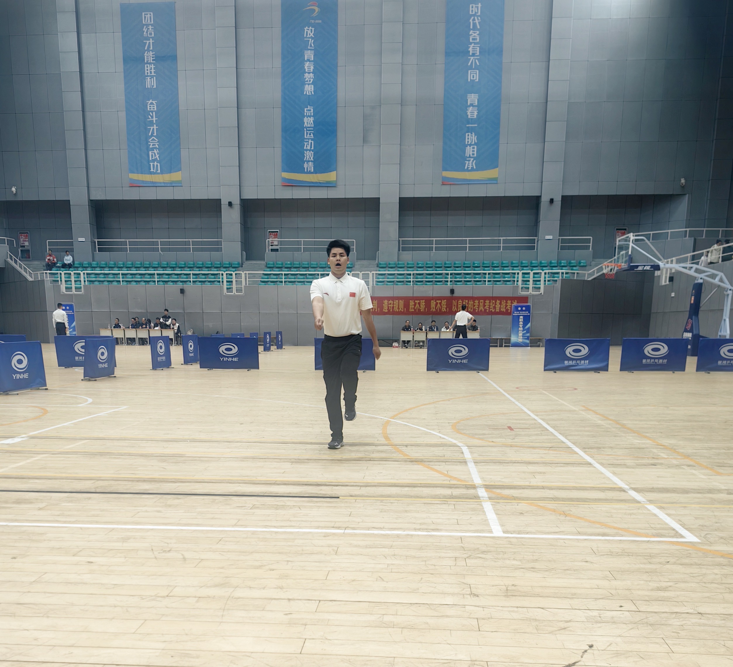 在比赛中,卢礼、黄富朋、黄自源老师沉着应战,稳定发挥。在教学设计环节,其对学校体育政策、课程标准的理解深刻透彻;其教案构思新颖,充分体现了“健康第一”的指导思想及以学生为中心的教学理念;深入贯彻落实“立德树人”的根本任务,特别是在教学环节,他以规范的技术动作、清晰的讲解、高效的课堂组织以及富有感染力的教学风格,赢得了评委们的高度认可,展现了新时代体育教师应有的专业姿态与育人智慧。
