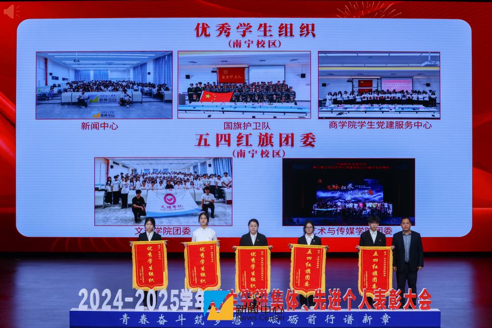 12月9日上午,我校分别在南宁、桂林两校区举行学校2024-2025学年学生先进集体、先进个人表彰大会。学校领导王金叶、金飞、韩乔、郑方兵、马纪涛分别出席两校区大会。学生工作部(处)、团委主要负责人、各二级学院党总支书记、辅导员及学生代表参加。两校区大会分别由学生工作部(处)部(处)长李枚晏、副部(处)长钟俊光主持。