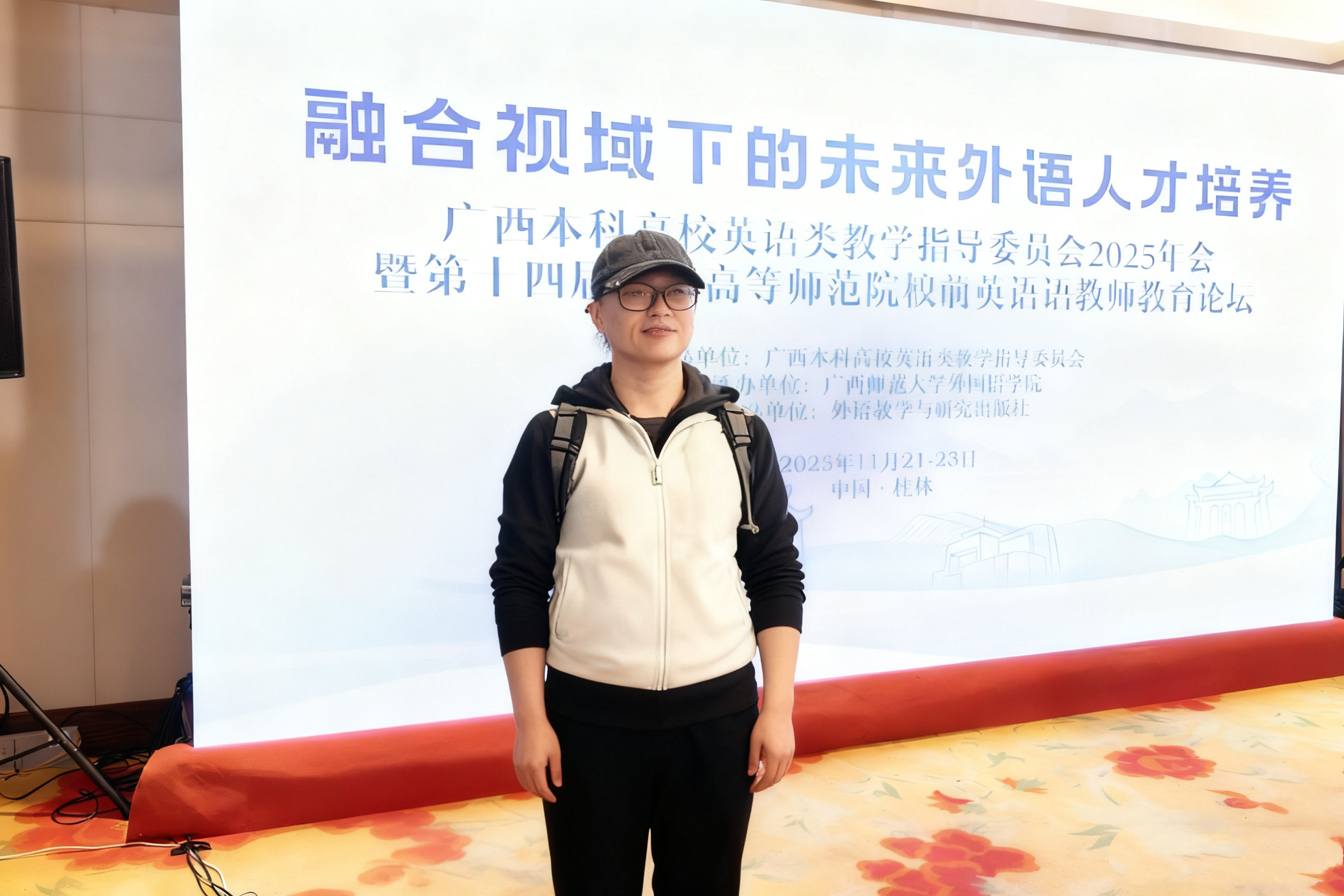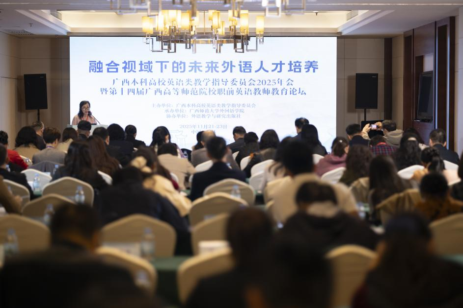 11月22日,广西本科高校英语类教学指导委员会2025年会暨第十四届广西高等师范院校职前英语教师教育论坛于桂林隆重召开。本次会议由广西师范大学承办,汇聚了区内外外语教育领域的知名专家、学者及一线教师,共同围绕“融合视域下的未来外语人才培养”这一核心主题展开深入研讨。今年会jinnianhuicom新视域文化产业学院高度重视此次学术盛会,委派英专教研室骨干教师张翰全程参会学习。