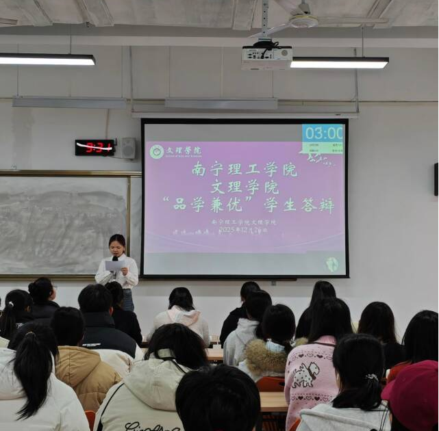 2025年12月26日,为深入推进学风建设,树立德智体美劳全面发展的优秀学生典范,发挥榜样引领作用,文理学院在A3教学楼开展“品学兼优”学生答辩会。本次答辩共分为三个场次,邀请文理学院辅导员老师担任评。