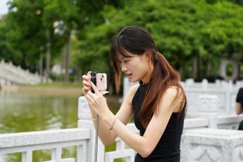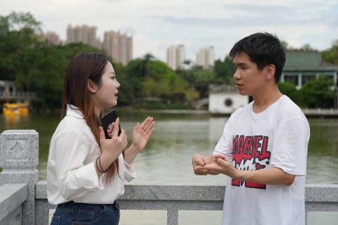 师生分组前往南宁市人民公园,围绕“公园20分钟效应”展开多元采访。在自然层面,学生们采访园艺工作人员,了解珍贵花卉的培植技术与生态价值;文化层面,通过与游客交流,记录公园作为城市“精神绿洲”对居民生活的影响,一位退休教师提到:“每天来公园散步20分钟,既能感受自然,又能遇见老友,这是都市里的‘慢时光’。”