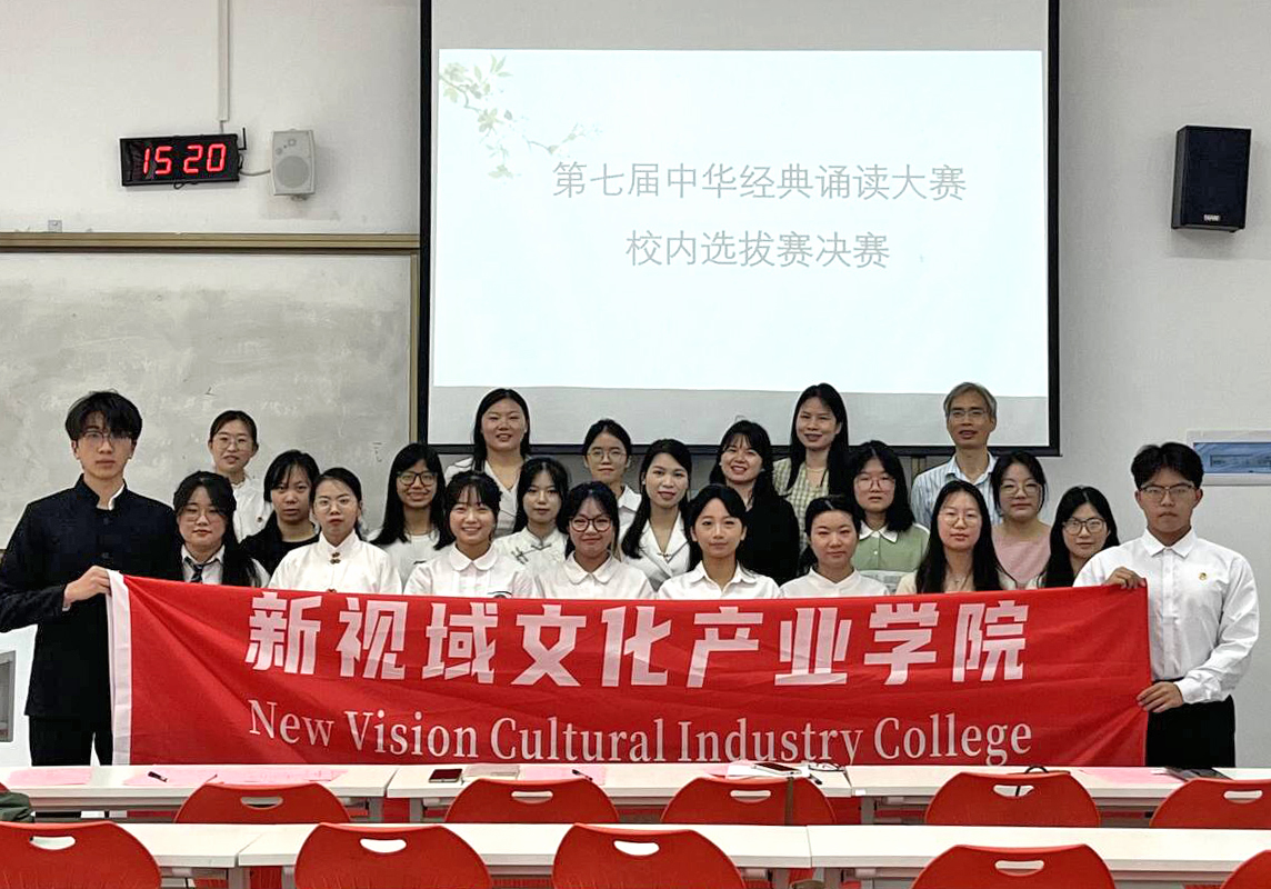 为贯彻落实党的二十大精神,加大国家通用语言文字推广力度,传承与发展中华优秀语言文化,教育部办公厅、国家语言文字工作委员会以“典耀中华,赓续文脉”为主题下发了关于举办第七届中华经典诵写讲大赛的通知。为响应教育部办公厅、国家语言文字工作委员会的号召,激发当代青年学子对中国传统文化的热爱,我校积极鼓励各级学子参加第七届中华经典诵写讲大赛的各个分赛项,同时,在新视域文化产业学院的大力支持下,我们举办了中华经典诵读大赛校内选拔赛。