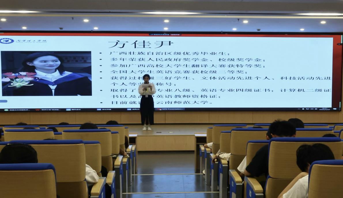 为进一步发挥优秀校友力量,搭建学校优秀校友与在校学生互动交流平台,文理学院开展第三十九讲“牵手计划”校友导师经验分享会,4月24日晚上在南宁校区图书馆119报告厅开讲,特邀2024届优秀毕业生方佳尹担任本次主讲人。
