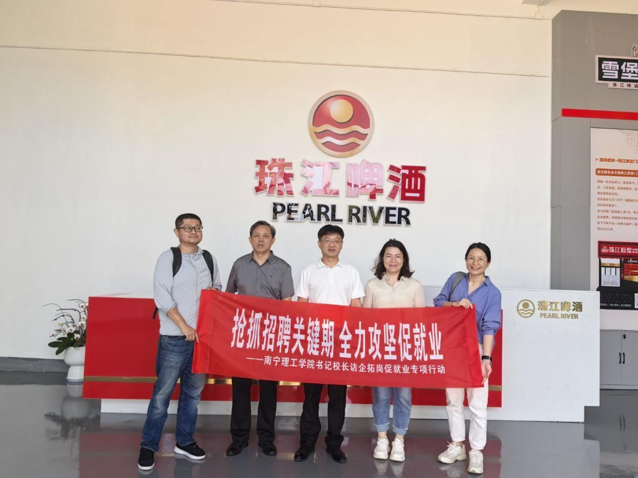 2025年4月27日商学院姚瑞基院长携专任教师及辅导员调研团前往广西珠江啤酒有限公司进行实地考察交流,广西珠江啤酒有限公司总经理陈学中、纪委书记马婕热情相迎。在参观过程中,企业人员详细介绍了珠江啤酒的酿造工艺、发展历程和企业文化,调研团对企业运营有了直观且深入的了解。随后的座谈会上,校企双方围绕企业对人才的需求及毕业生实习、产学研合作等方面展开深入交流,并达成一系列共识,陈总经理表达了与我校建立长期合作关系的期望。