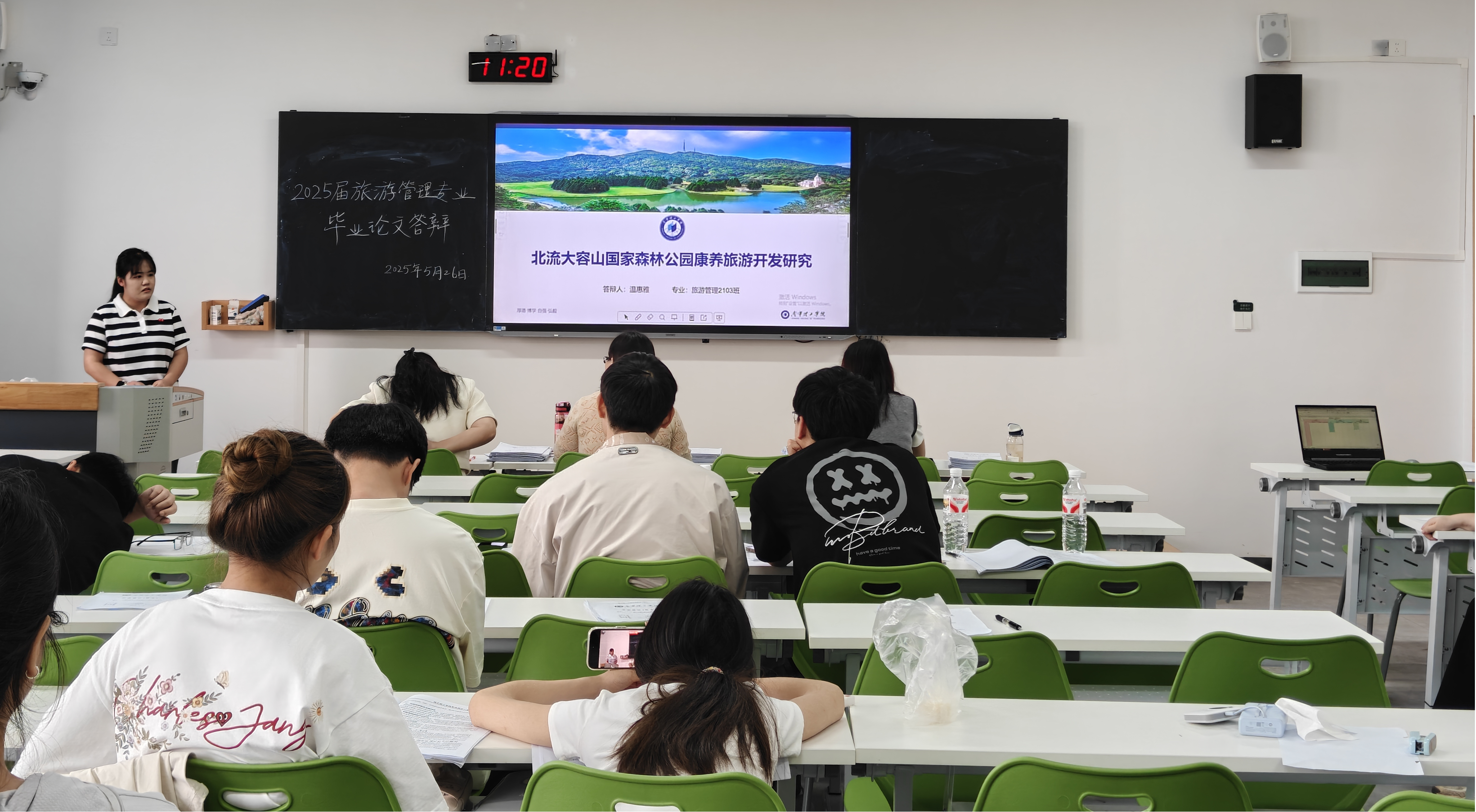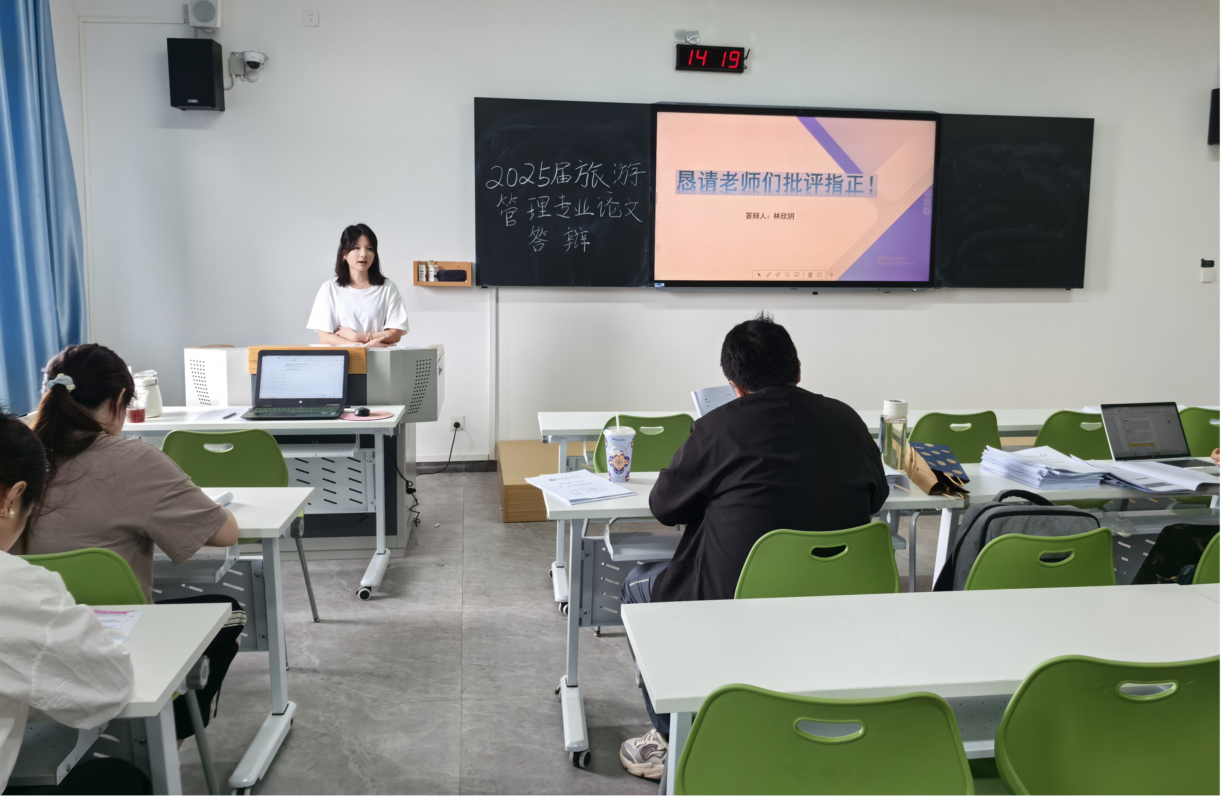 2025年5月26日,商学院2025届旅游管理专业本科毕业论文答辩工作在A2513和A2514教室举行。为保障此次毕业论文答辩顺利推进,旅游管理专业分为两个小组进行,每个答辩小组均由三位教师作为答辩老师,严格遵循本科毕业论文答辩流程与学术规范,对毕业生学术水平进行全面考核。同时,每组还配备了一名答辩秘书,负责现场记录、材料规整等工作,确保答辩流程高效有序。
