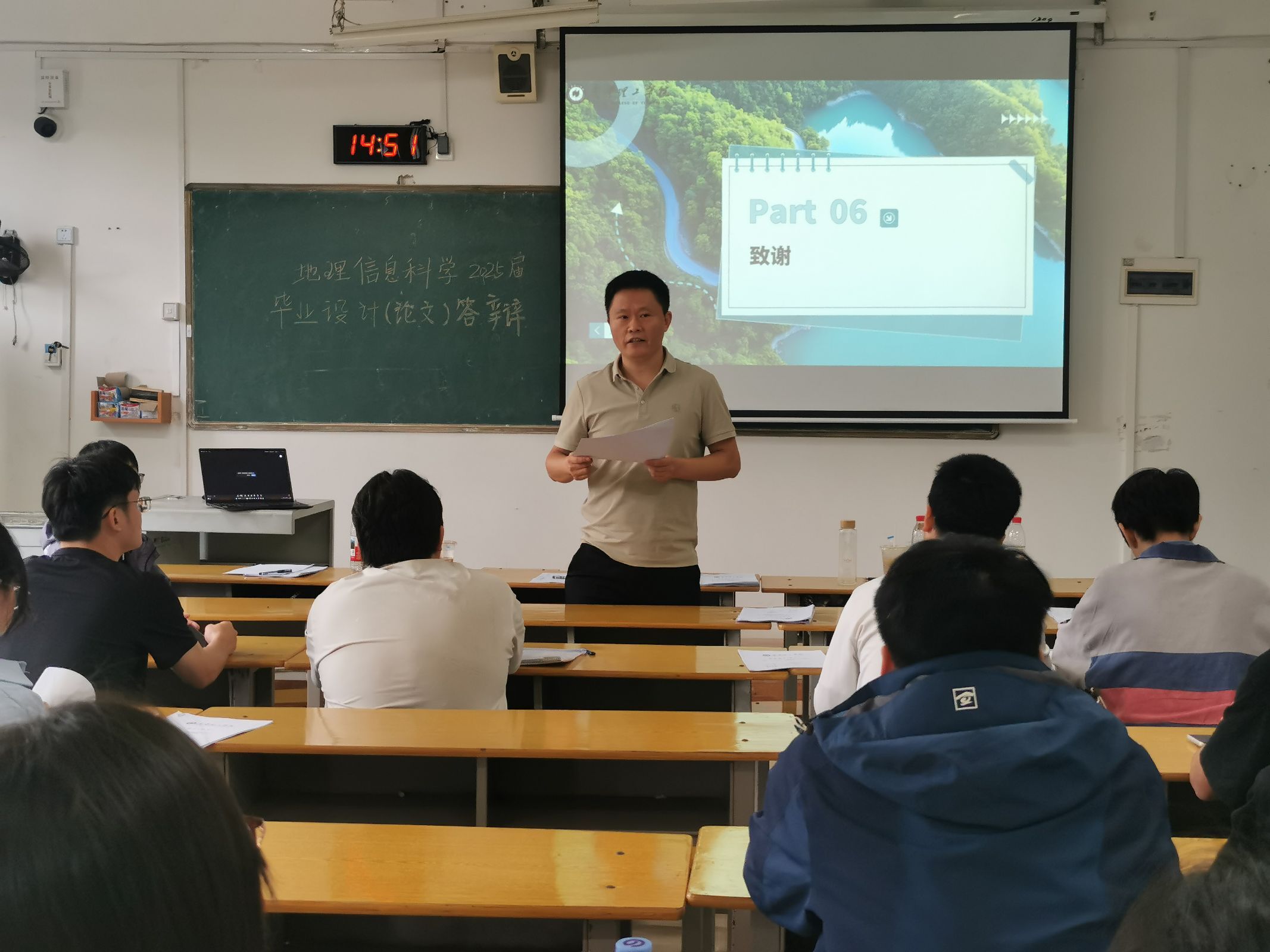 答辩现场,来自地理信息科学专业的学子们展示了多项创新性研究。其中,撰写无人机应用方向的同学,通过多源遥感数据融合,有效提升了地理信息数据采集效率;土地利用变化相关论文则基于多源时空数据,为国土空间规划提供了科学决策支持;敏感度分析方向的论文聚焦地质灾害预警,通过建立敏感性评价体系,优化了边坡稳定性预测模型。评审专家从技术深度、应用价值、方法创新等角度提问,并针对成果转化路径提出建议。企业代表结合实际案例,指导学生如何将学术模型转化为可落地的工程解决方案。