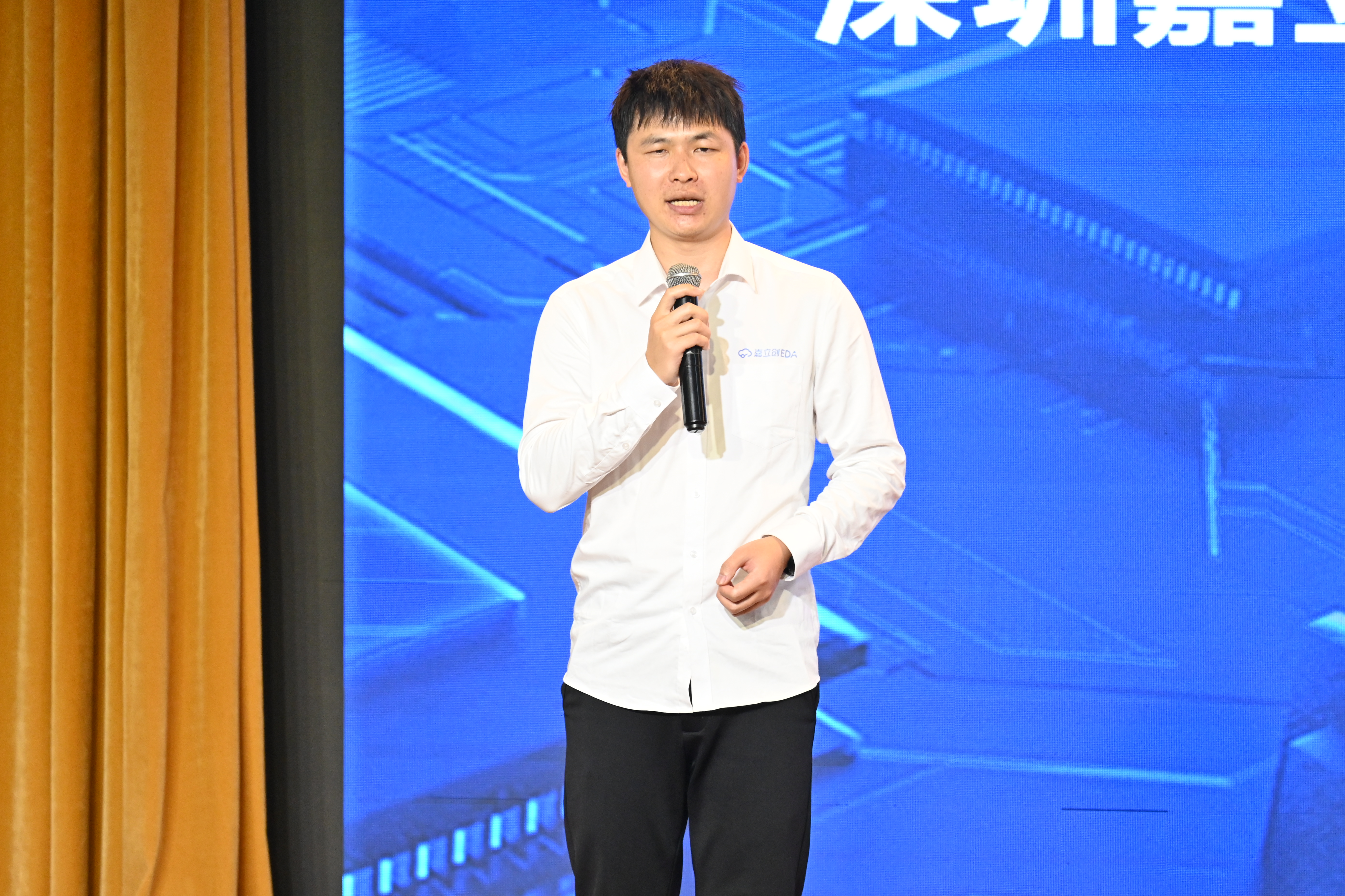深圳嘉立创科技集团股份有限公司EDA生态负责人莫志宏为竞赛颁奖仪式致辞,他对绿智制造产业学院的协办表达了感谢,对竞赛的成功举办及参赛学子的创新能力给予高度肯定,也对获奖团队表示了祝贺,并表示公司将继续支持高校电子设计竞赛,为培养更多优秀的电子信息人才提供助力。