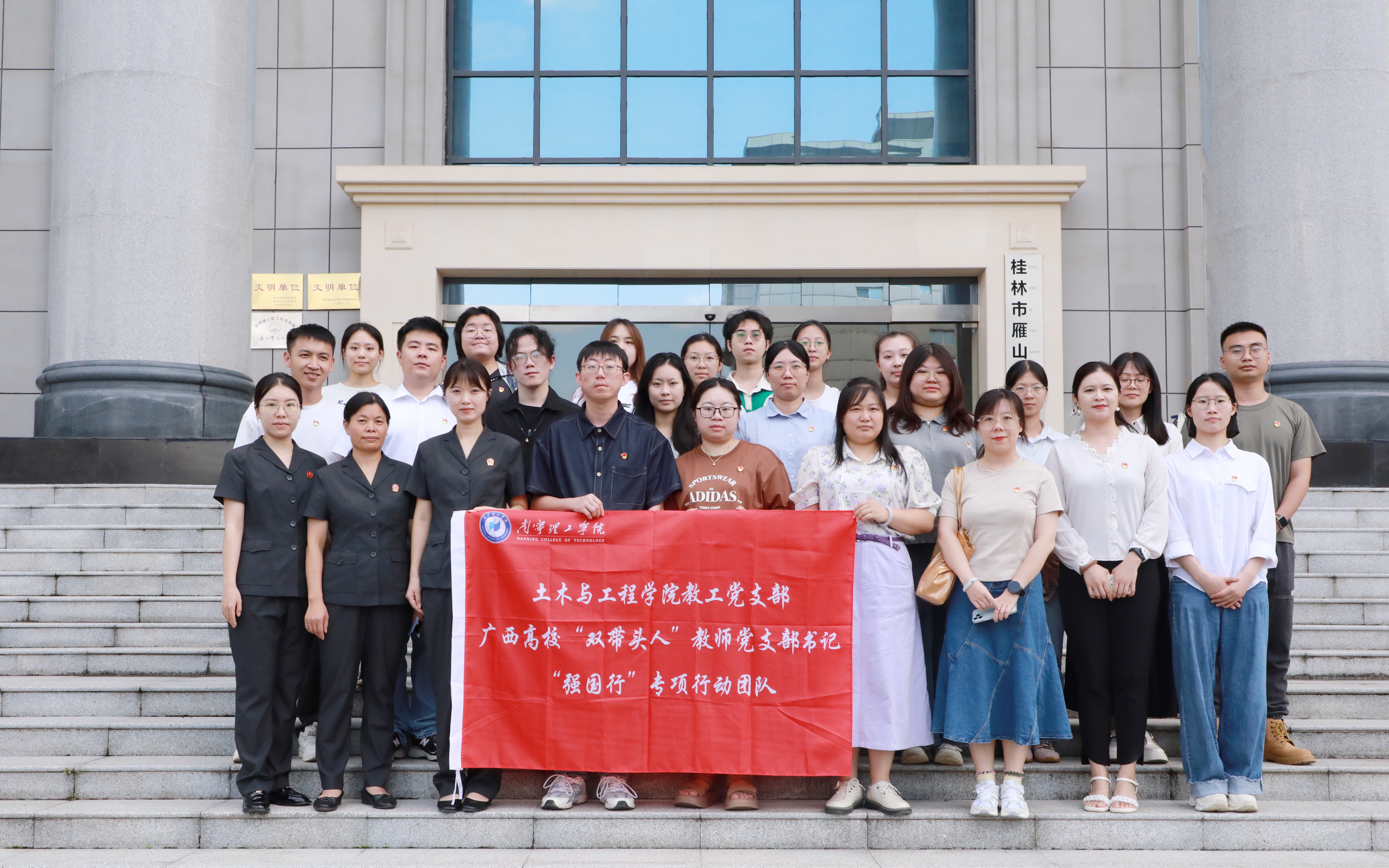 近日,土木与工程学院教工党支部联合桂林市雁山区人民法院,举行了一场主题鲜明、内涵丰富的党建共建活动,旨在深化院校协同育人机制,提升教师党员法治素养。学校党委组织部、宣传部相关负责人及学院教师党员代表参与此次活动。