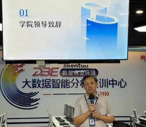 本次论坛以“数据•智汇•共享”为主题,旨在深化校企合作,推动智能会计产业学院的可持续发展。活动于9:30正式开始,商学院院长姚瑞基致开幕辞,对与会嘉宾表示热烈欢迎,期待通过校企协同育人,培养更多适应行业需求的复合型人才。活动伊始,商学院院长姚瑞基代表学院向所有合作伙伴致以衷心感谢。他在致辞中表示:“学院的发展离不开各位合作伙伴的鼎力支持。正是有了新道科技、FINS瑞熠等优秀企业的真诚相助,我们才能在产教融合、协同育人的道路上不断取得新突破。”