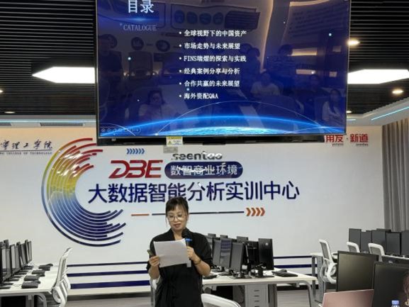 本次论坛特邀两位行业专家进行主题分享。首先,新道科技有限公司广西区总经理吴征科先生结合企业实践经验,探讨了新技术对会计行业的变革影响及校企合作的新模式。随后,香港FINS瑞熠公司CEO李田芳女士以“中国资产的全球机遇与配置之道”为题,带来了一场高水平的行业洞察。她从“中国资产全球机遇”和“海外配置实践探秘”两大维度展开,深入剖析了中国资产在全球资本市场的独特优势与发展潜力,并分享了海外证券与保险资产配置的实战策略,为中国资产的全球化布局提供了宝贵建议。李田芳女士的分享既有理论高度,又具实践指导意义,为现场师生及企业代表打开了国际化视野。最后香港FINS瑞熠公司首席投研官莫名夫就海外资配等问题与现场教师进行了交流与互动。